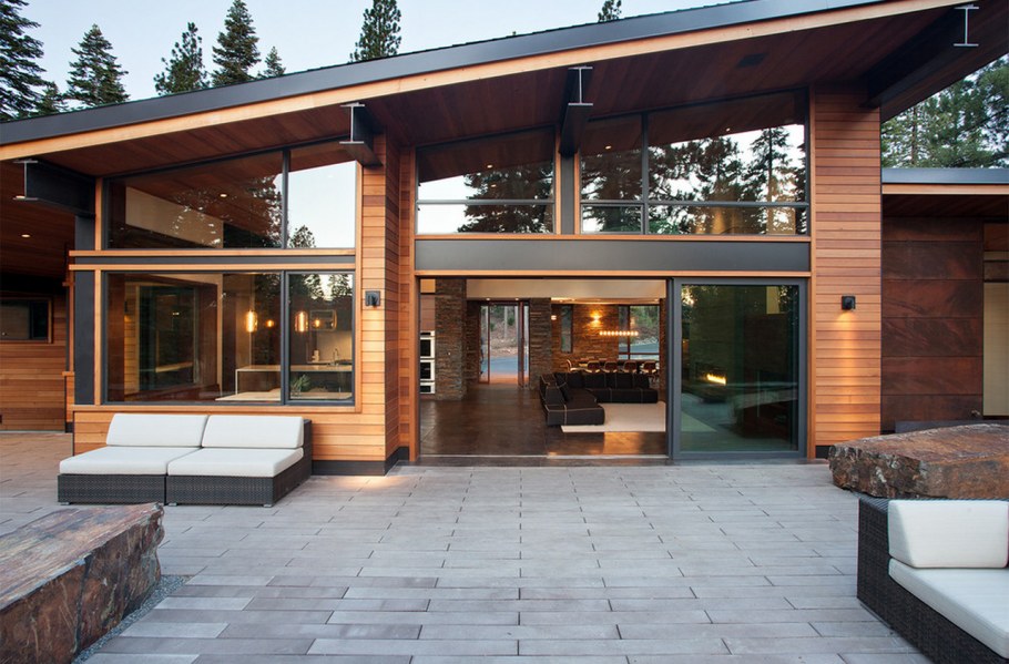 Одноэтажный дом в стиле лофт с панорамными окнами