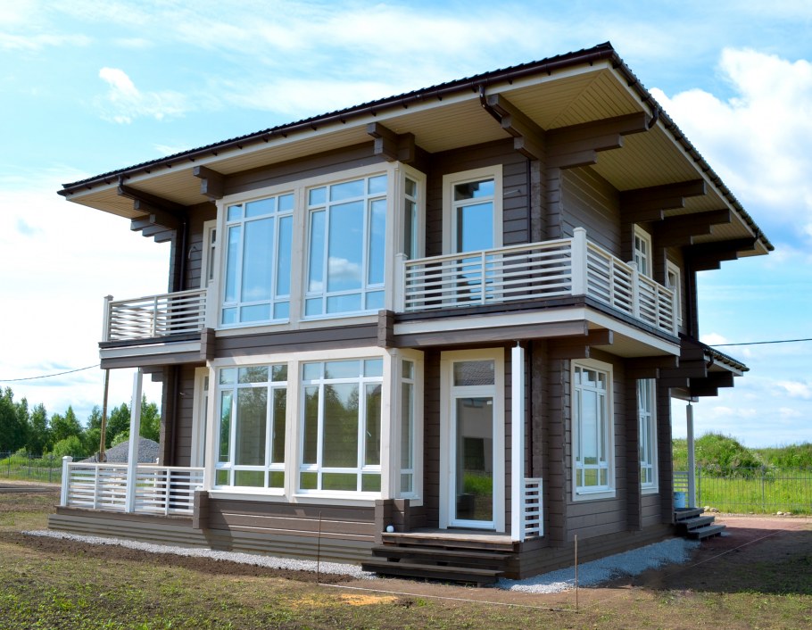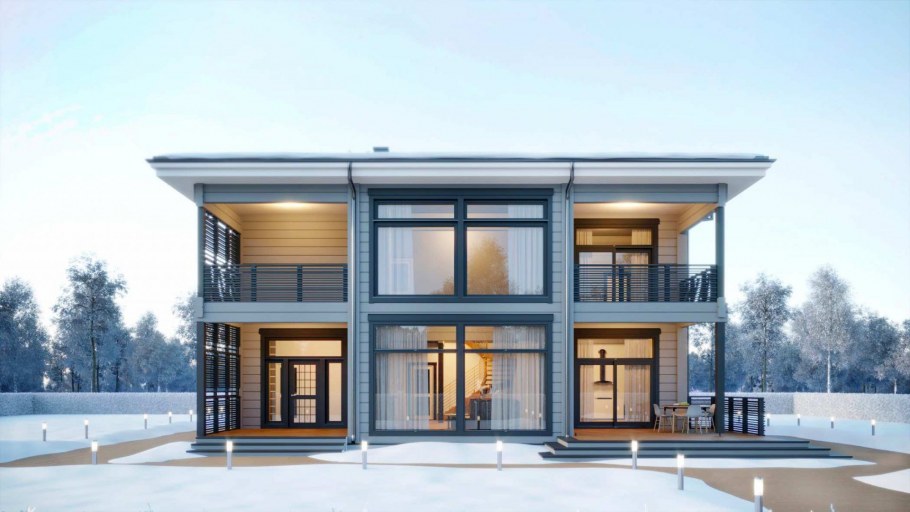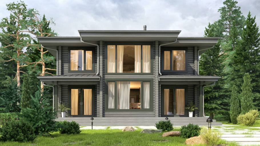 Дом с большими окнами двухэтажный
