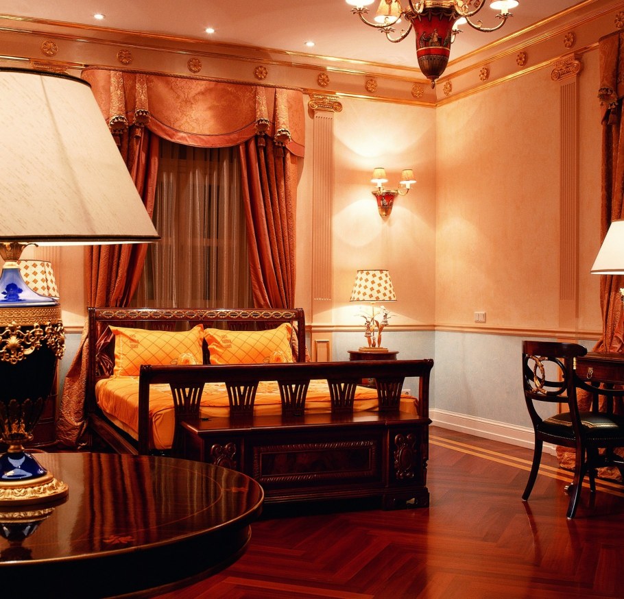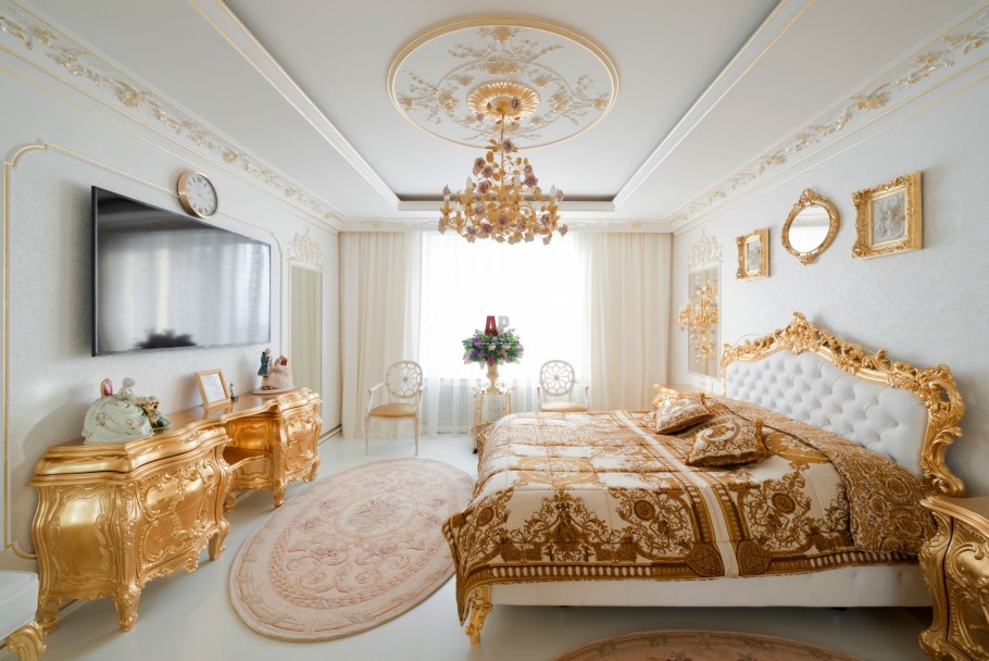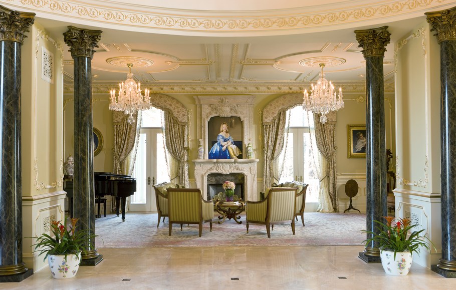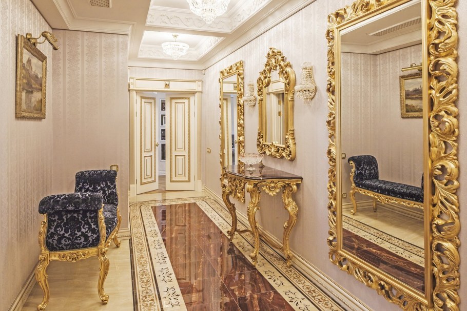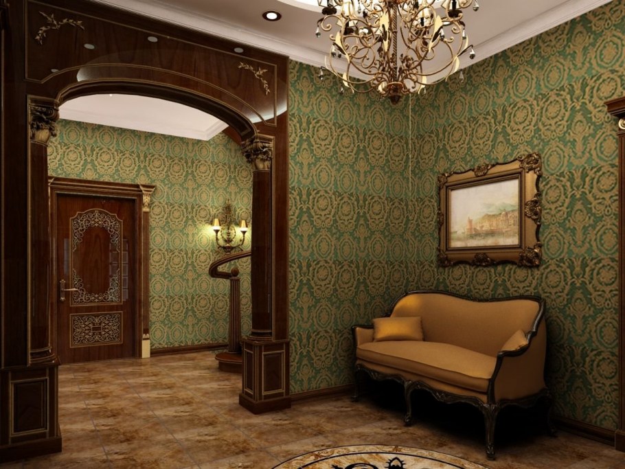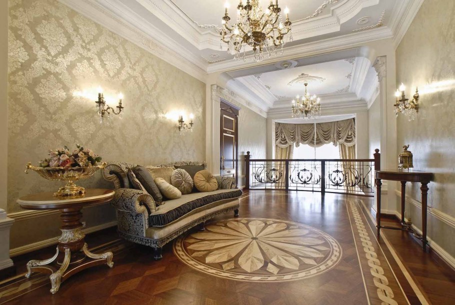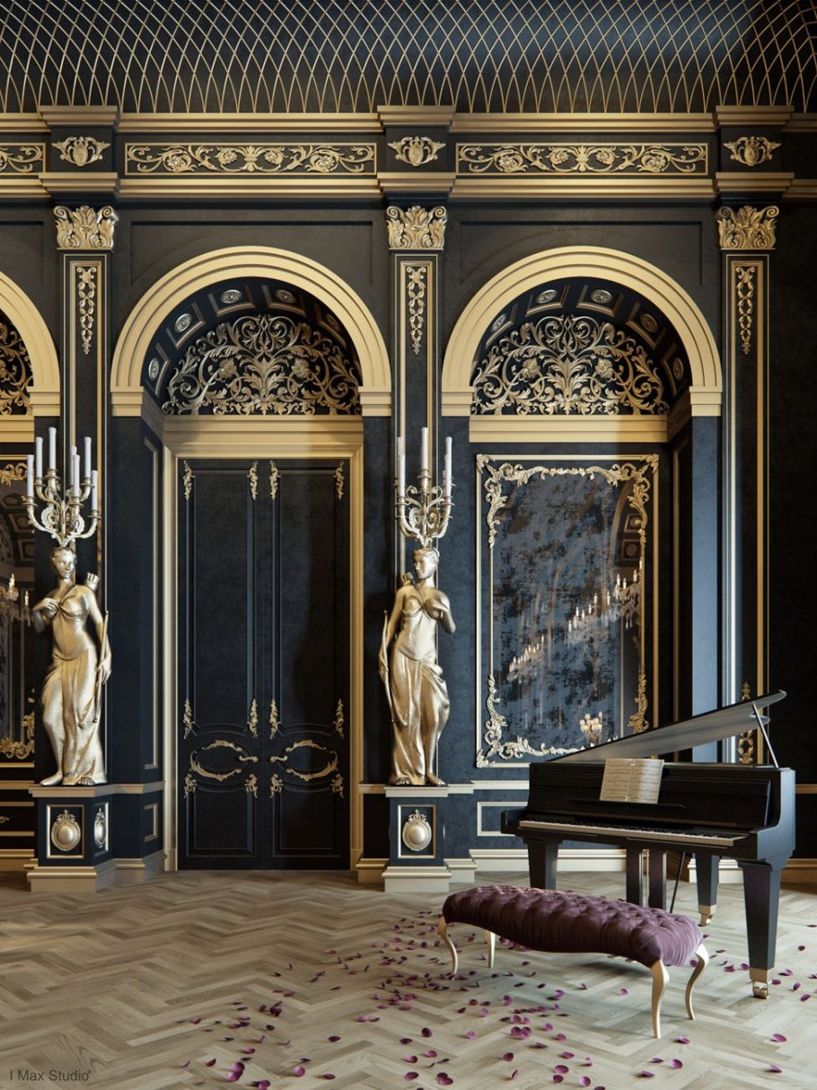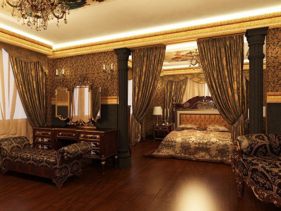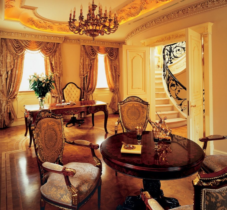 Зелёная гостиная в классическом стиле с золотыми акцентами фото