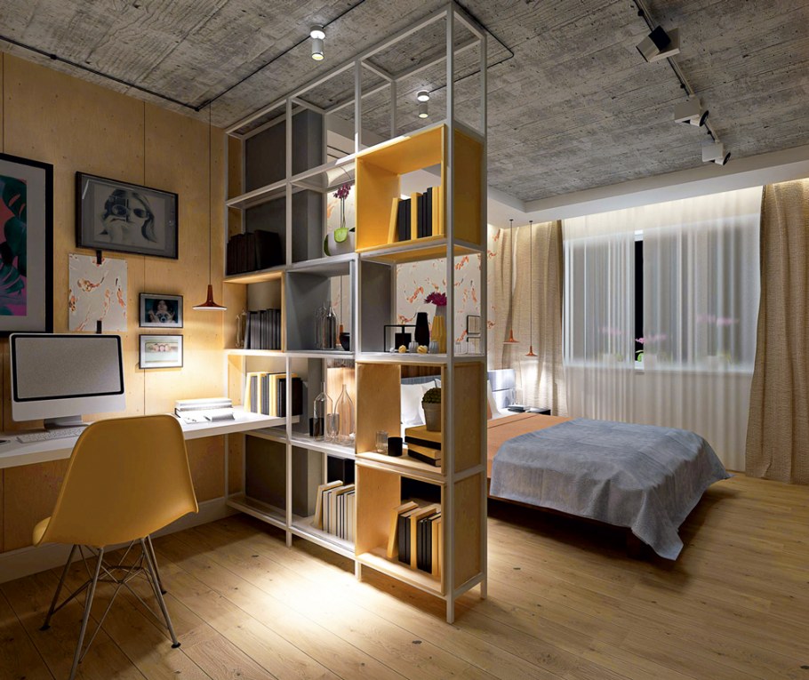 Зонирование студии перегородками