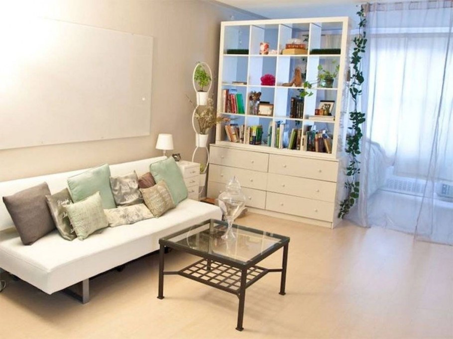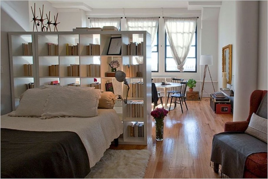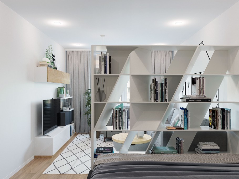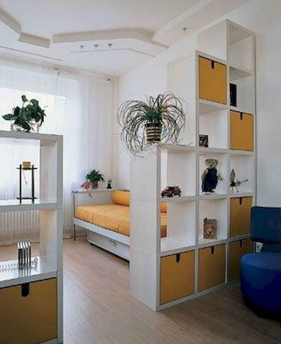 Спальня гостиная зонирование икеа стеллаж
