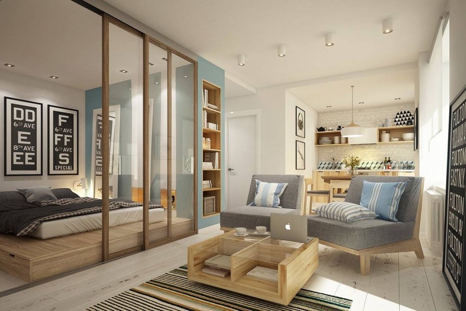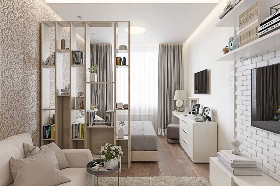Зонирование гостиная спальня 20 кв