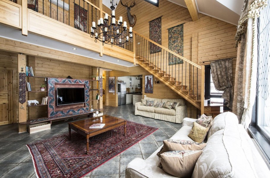 Деревянный коттедж интерьер