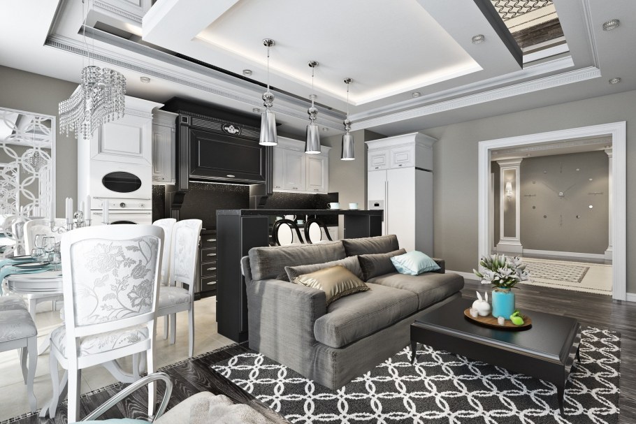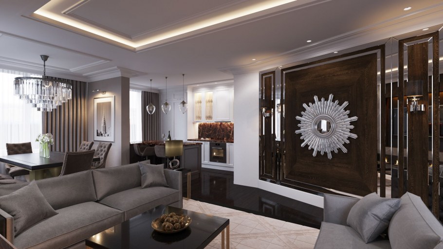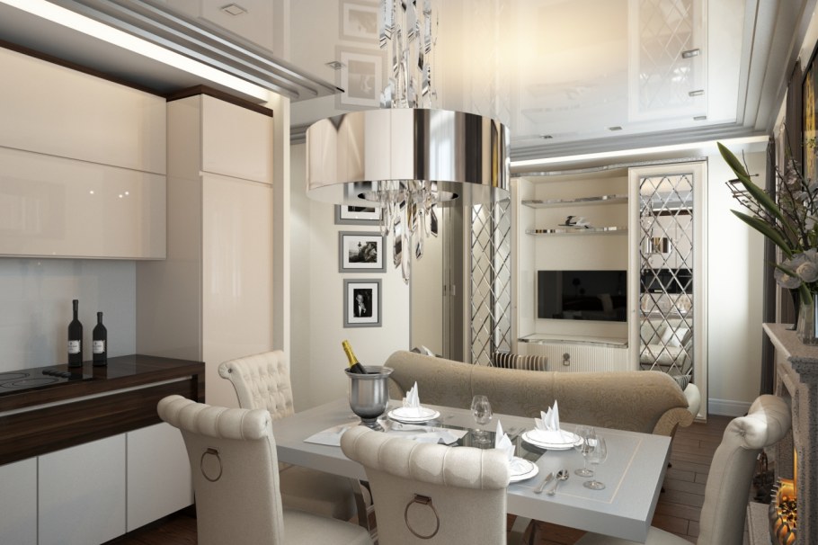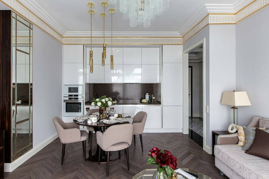 Кухня-гостиная 20 кв.м арт деко