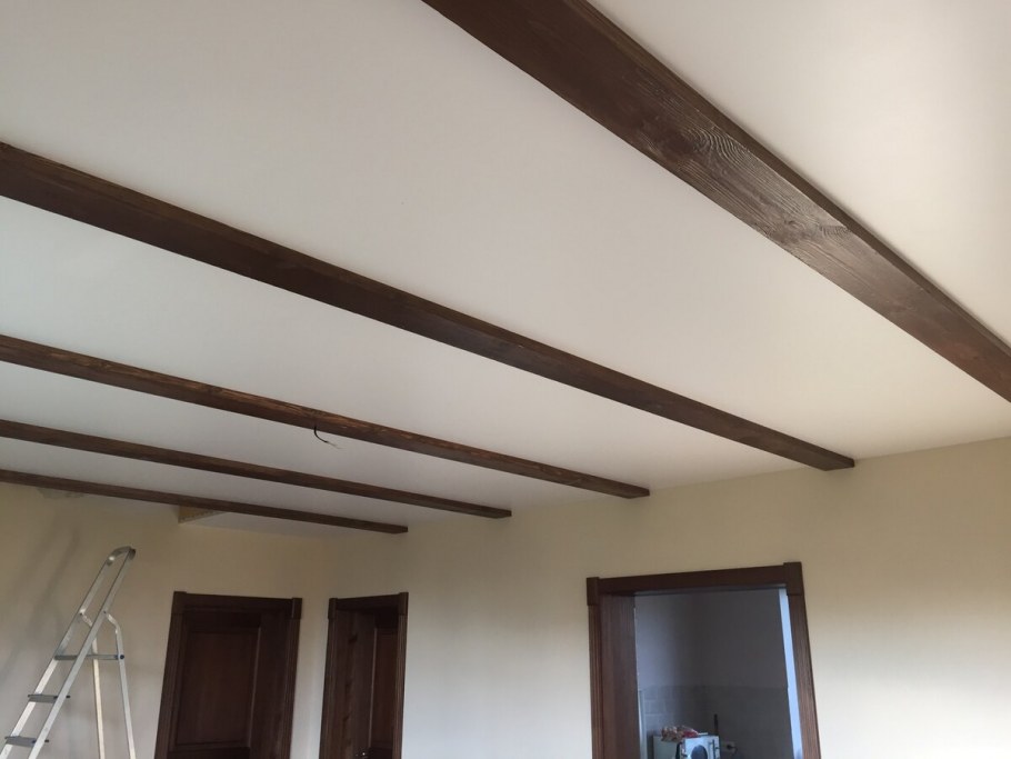 Монтаж фальшбалок на потолок