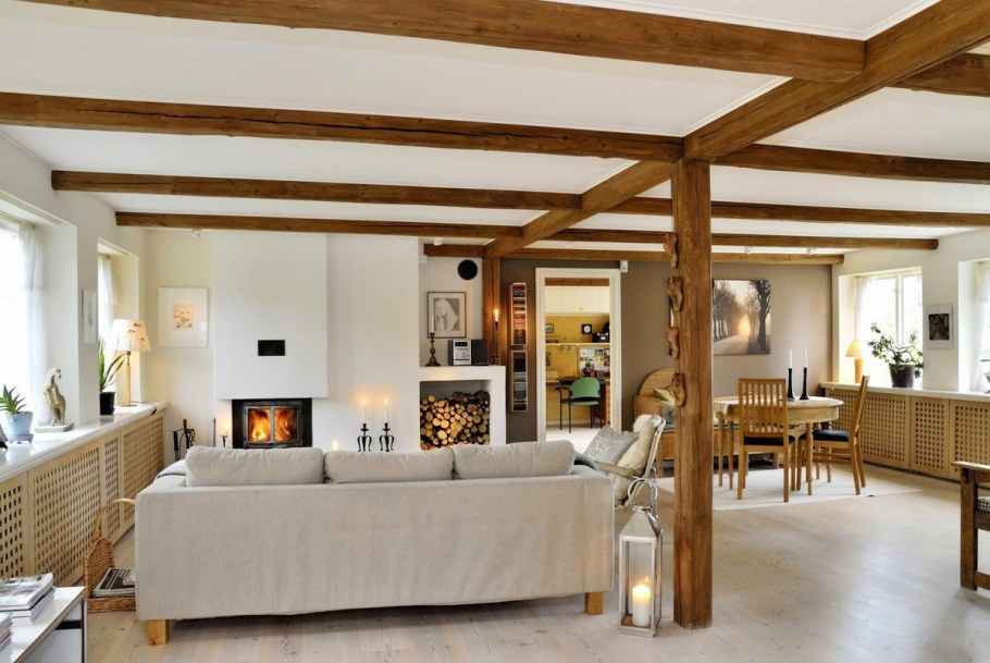 Интерьер с деревянными балками