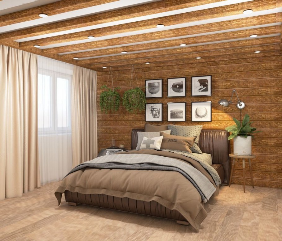 Деревянный потолок в спальне