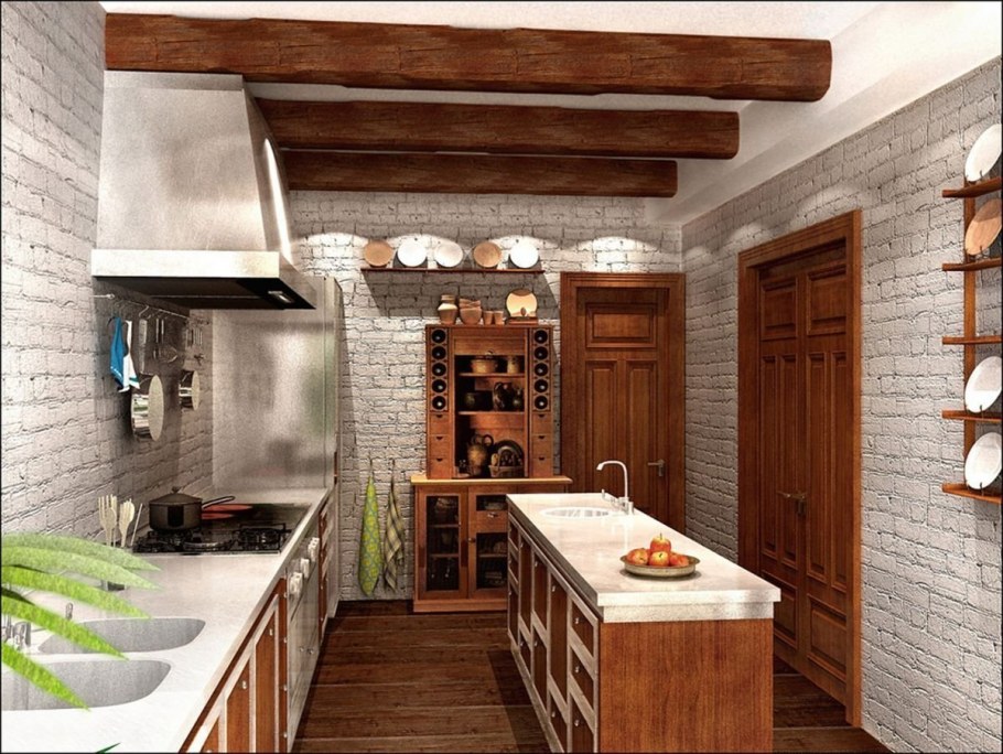 Фальшбалки в интерьере лофт кухня