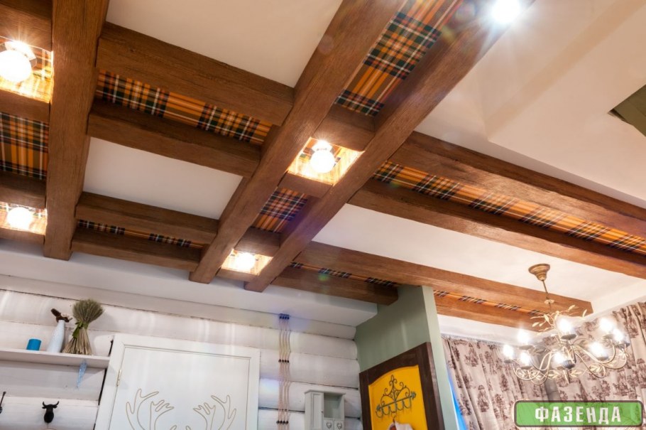 Потолочные фаотш балки в интерьере