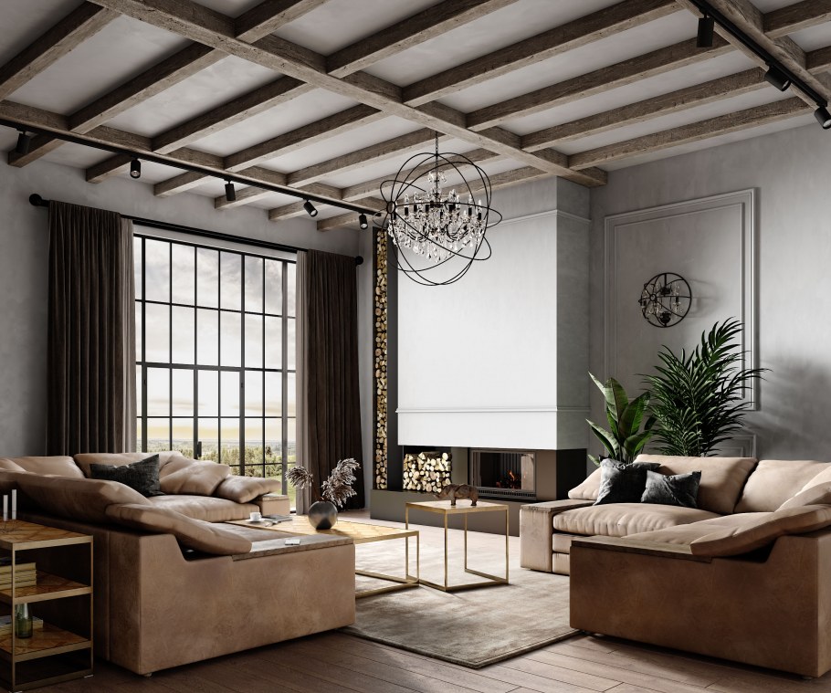 Декоративные потолочные балки в интерьере