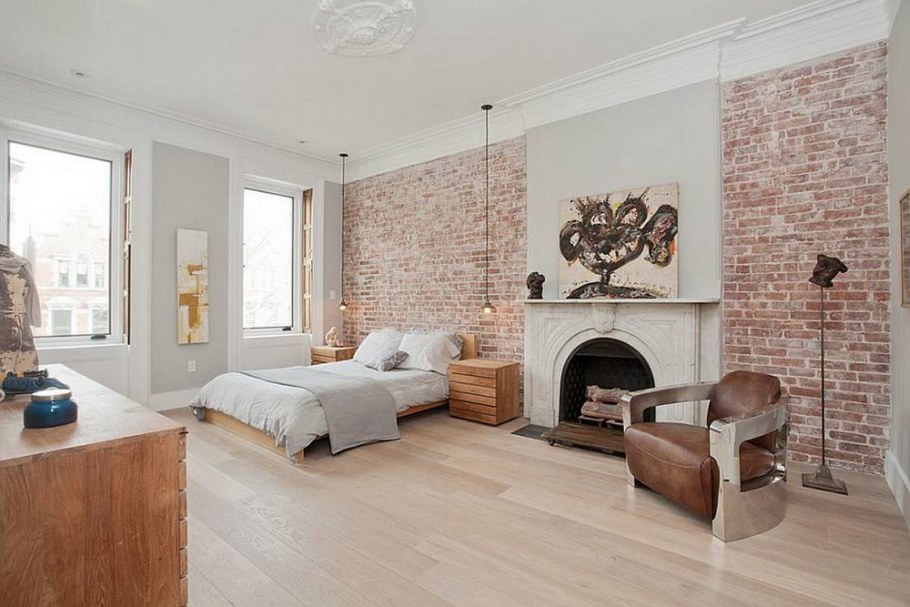 Декоративный кирпич в спальне