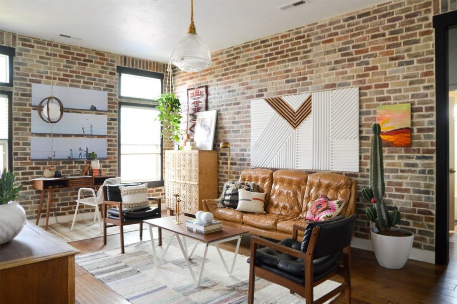 Гостиная с кирпичной стеной