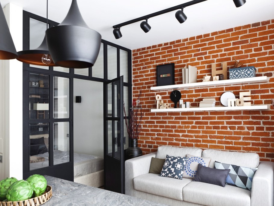 Кирпичная перегородка в интерьере
