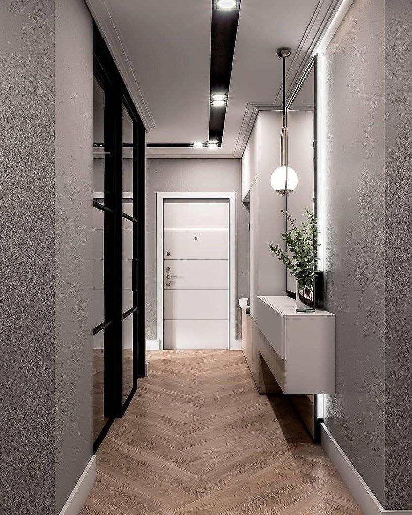 Прихожая для узкого коридора дизайн в современном стиле в квартире (75 фото)