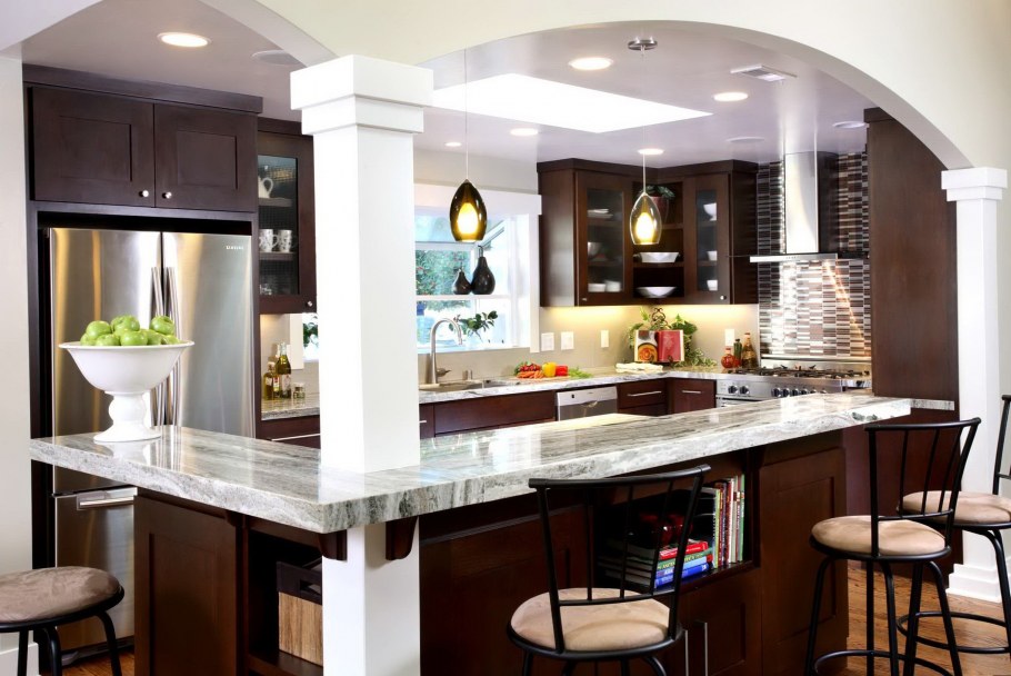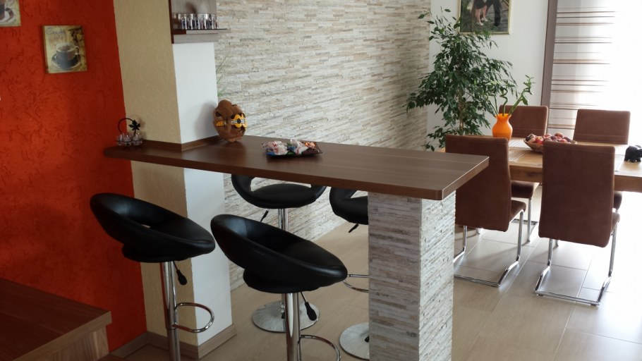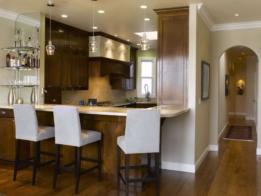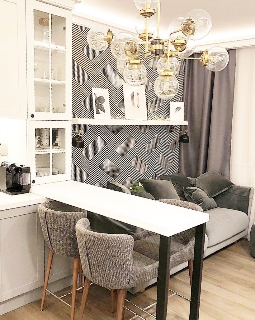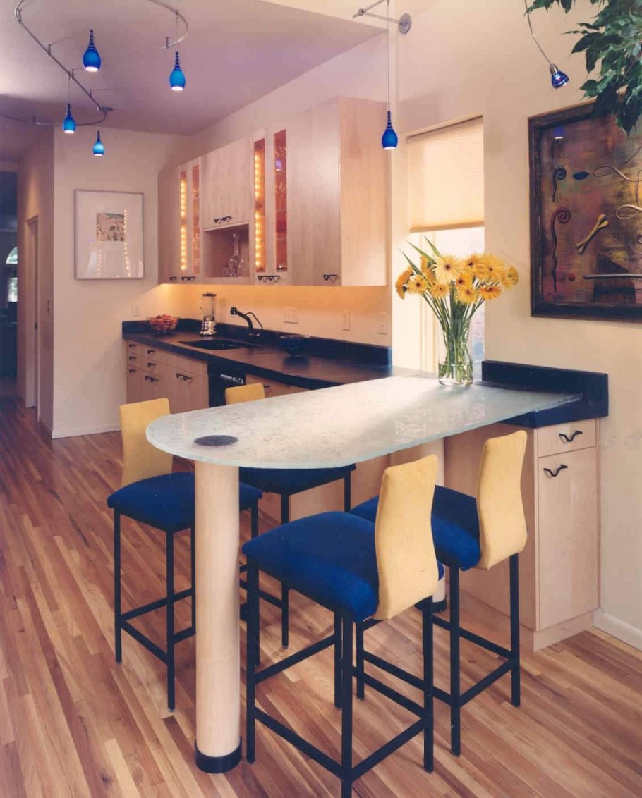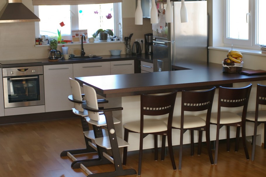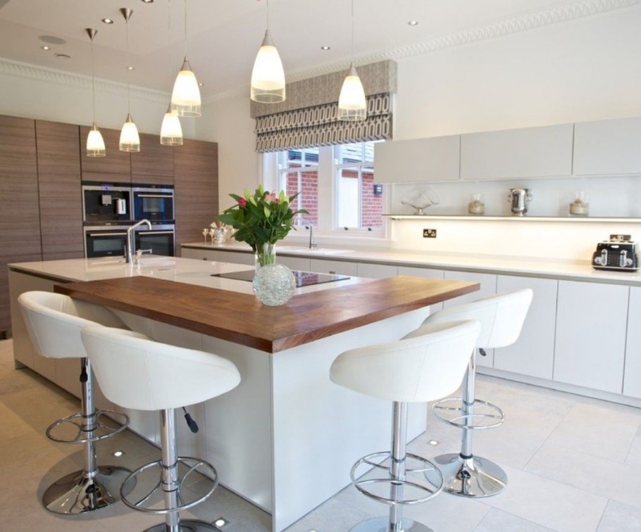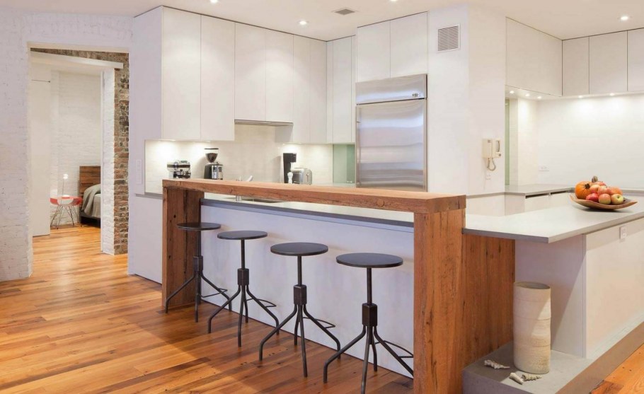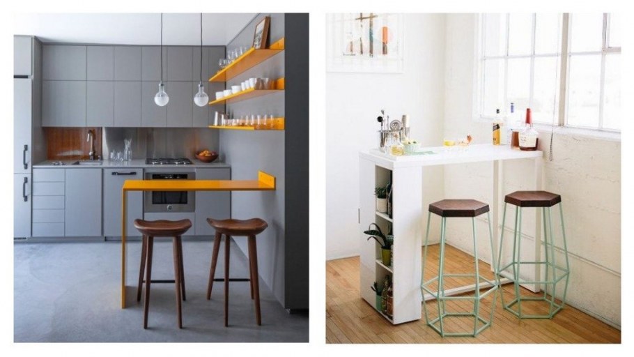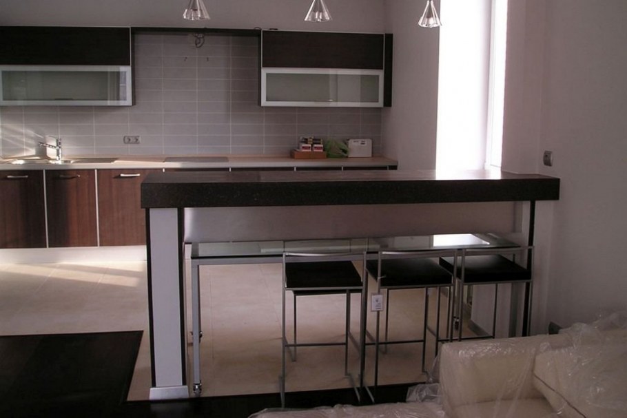 Барная стойка и стол на кухне в интерьере (78 фото)