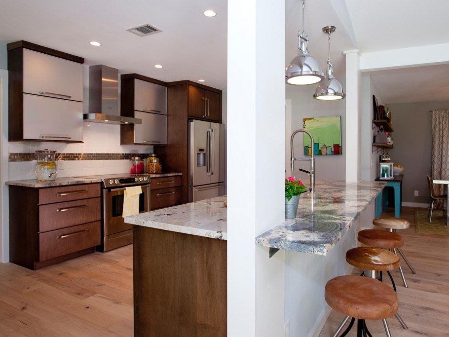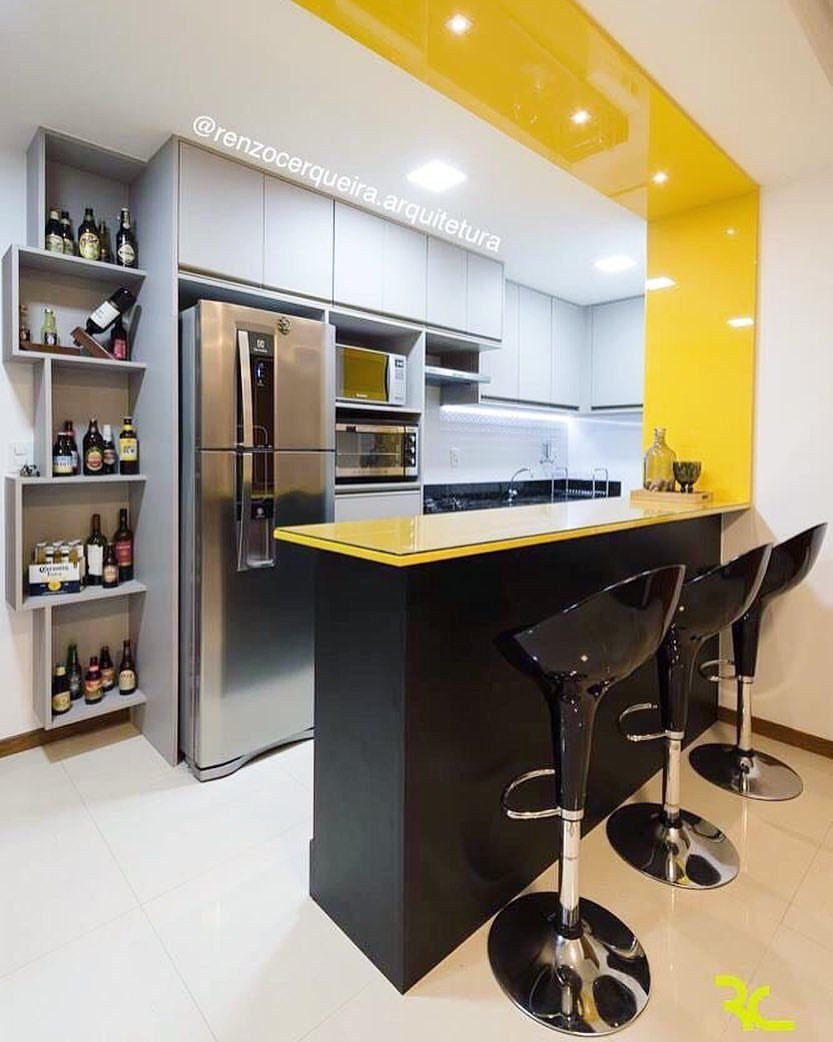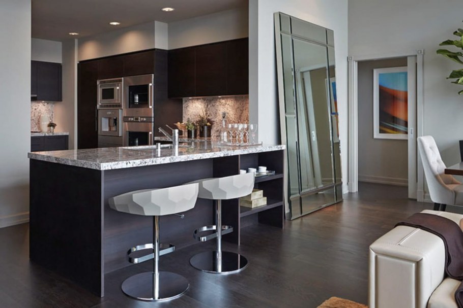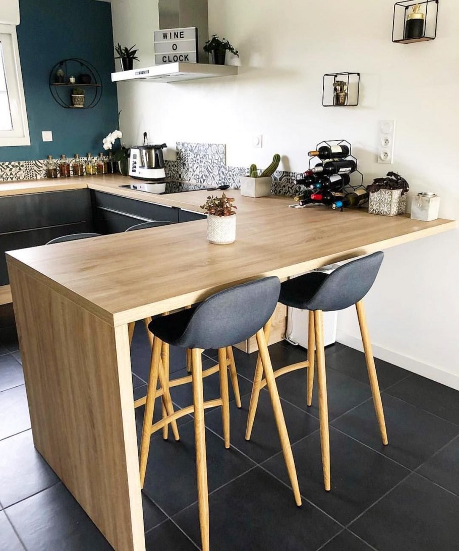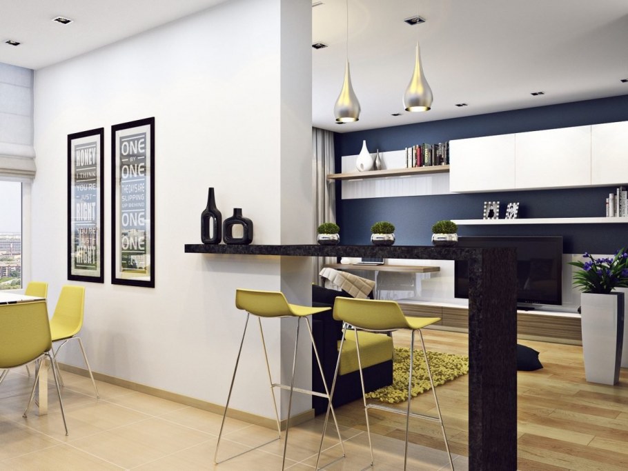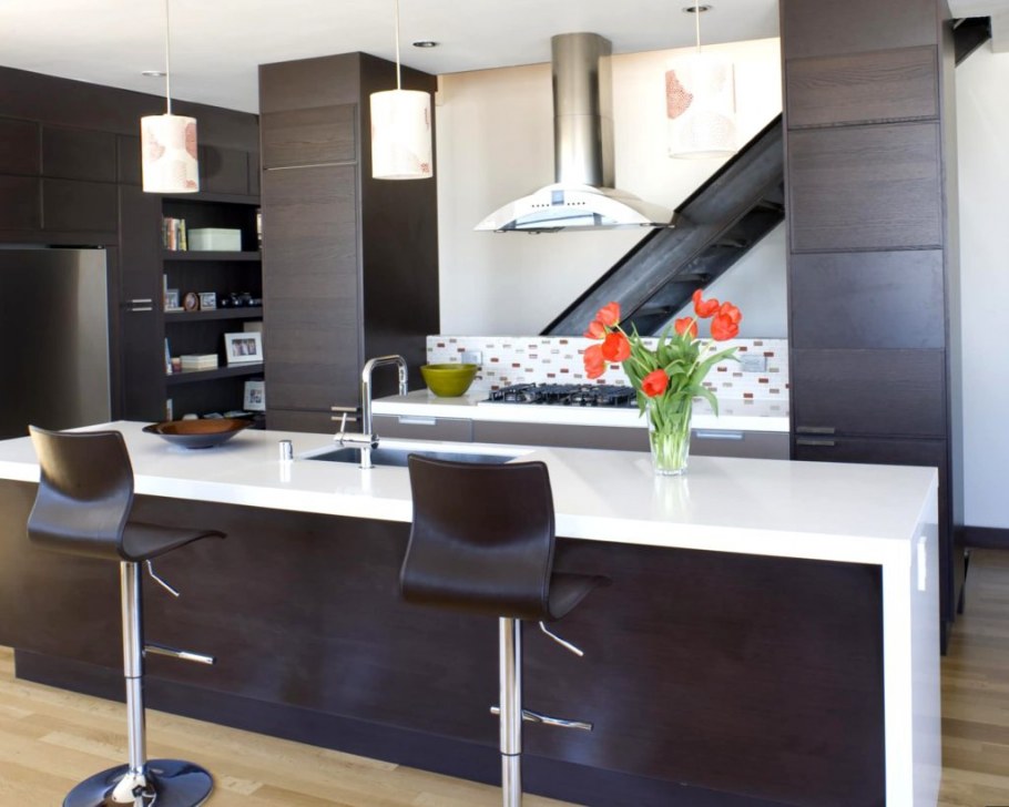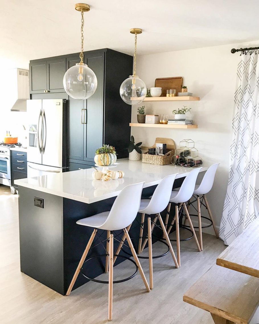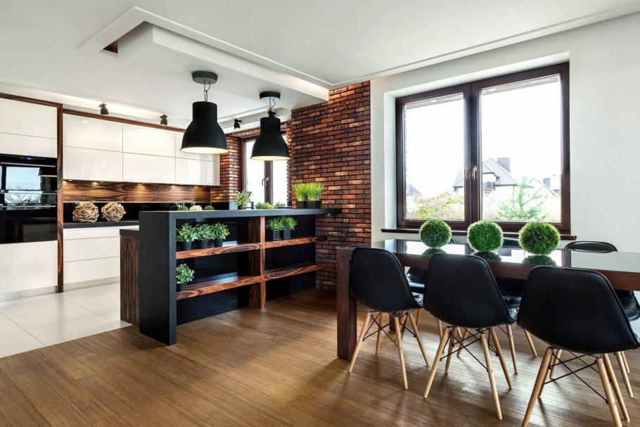 Барная стойка и стол на кухне в интерьере (78 фото)