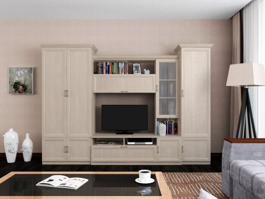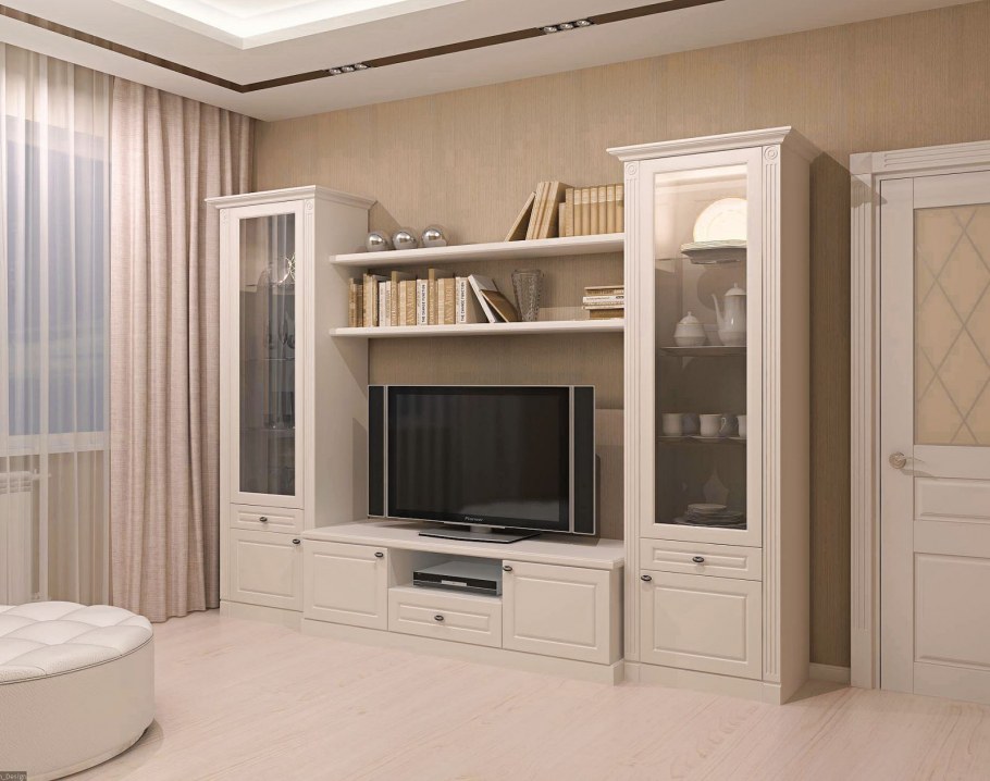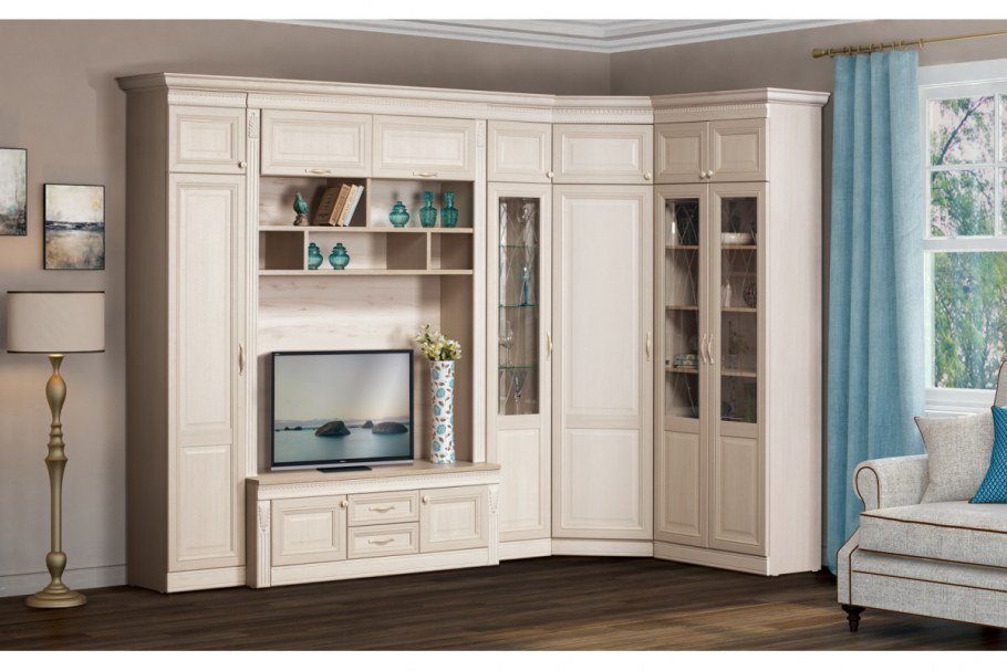 Стенка в гостиную классика светлая