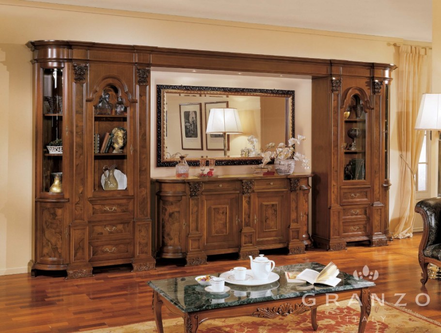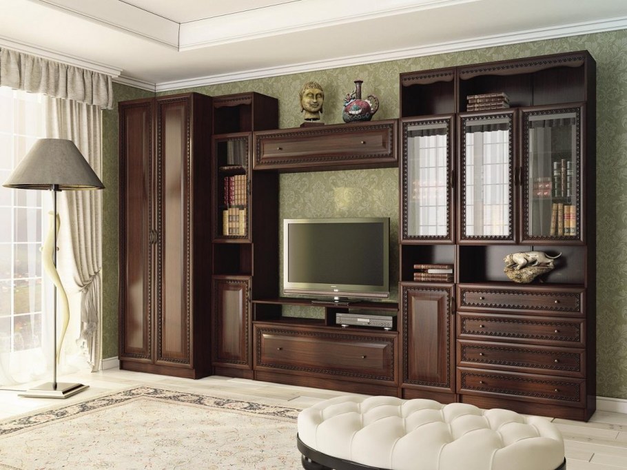Стенка в гостиную классика (75 фото)