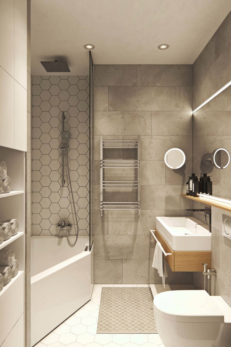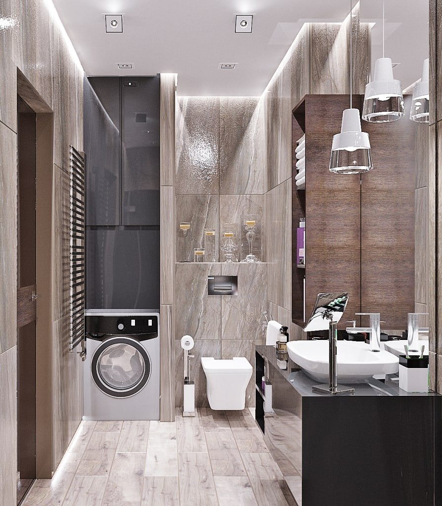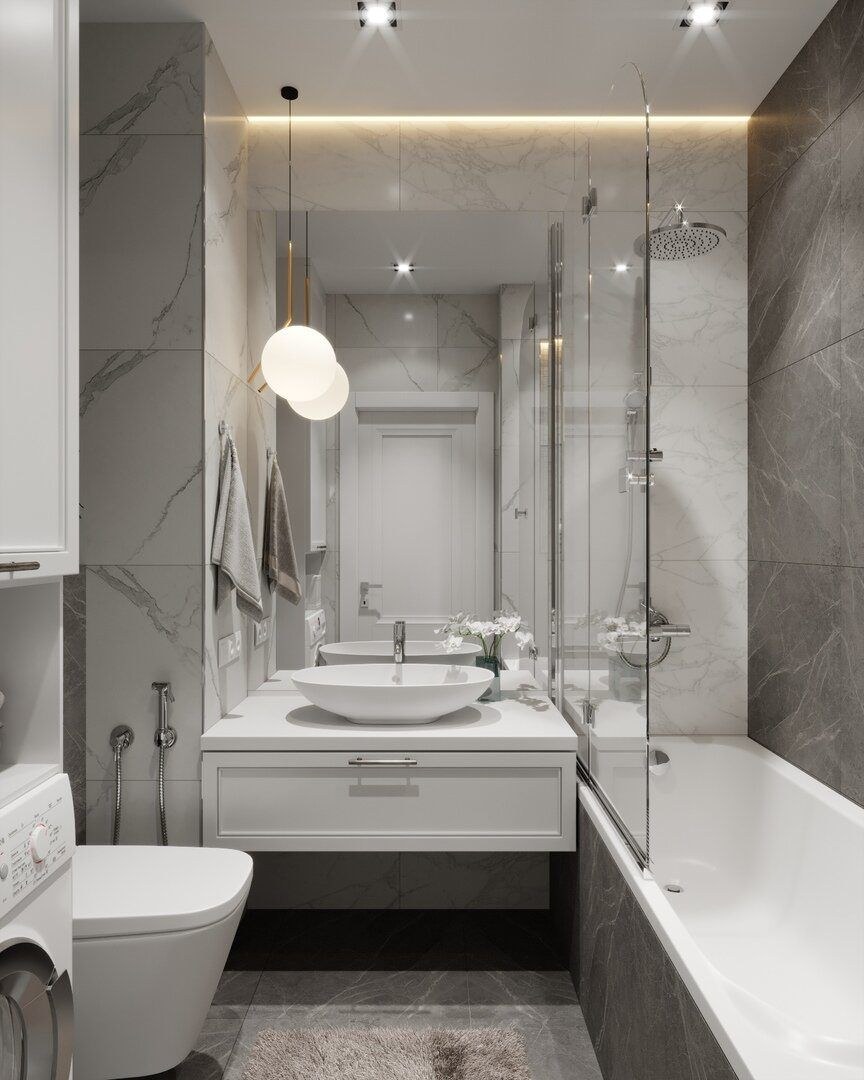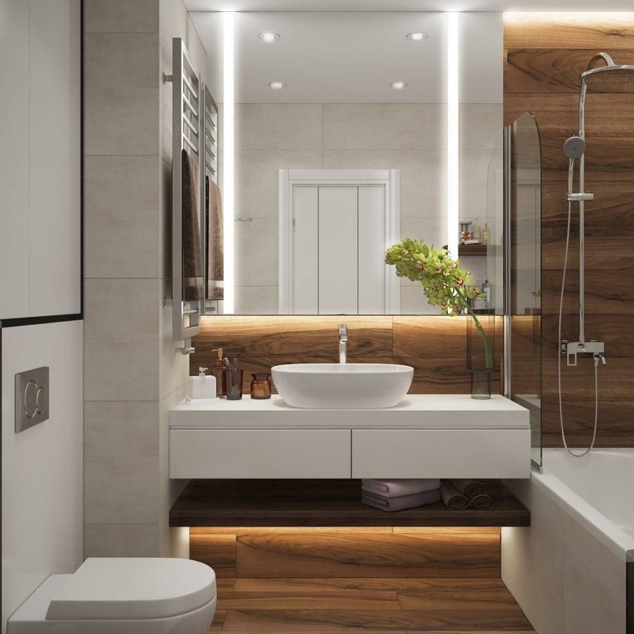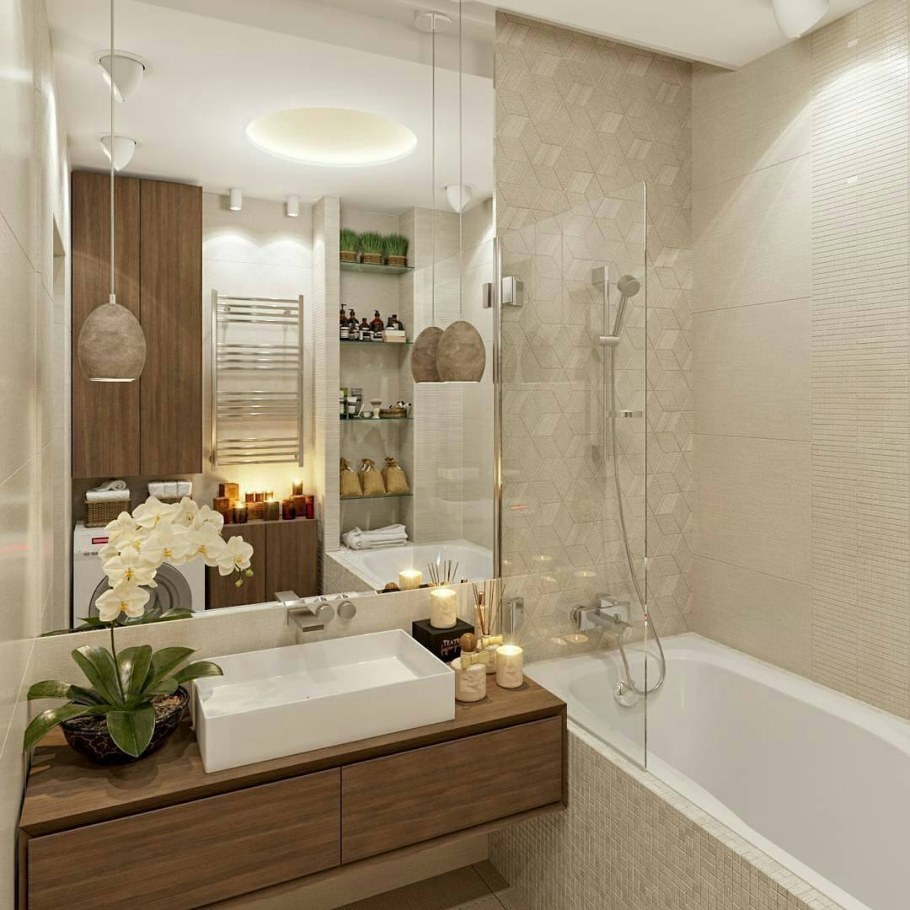 Интерьеры небольших ванных комнат в современном стиле (82 фото)