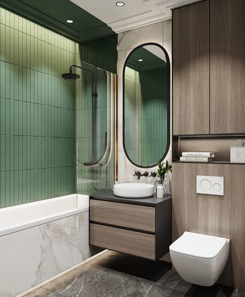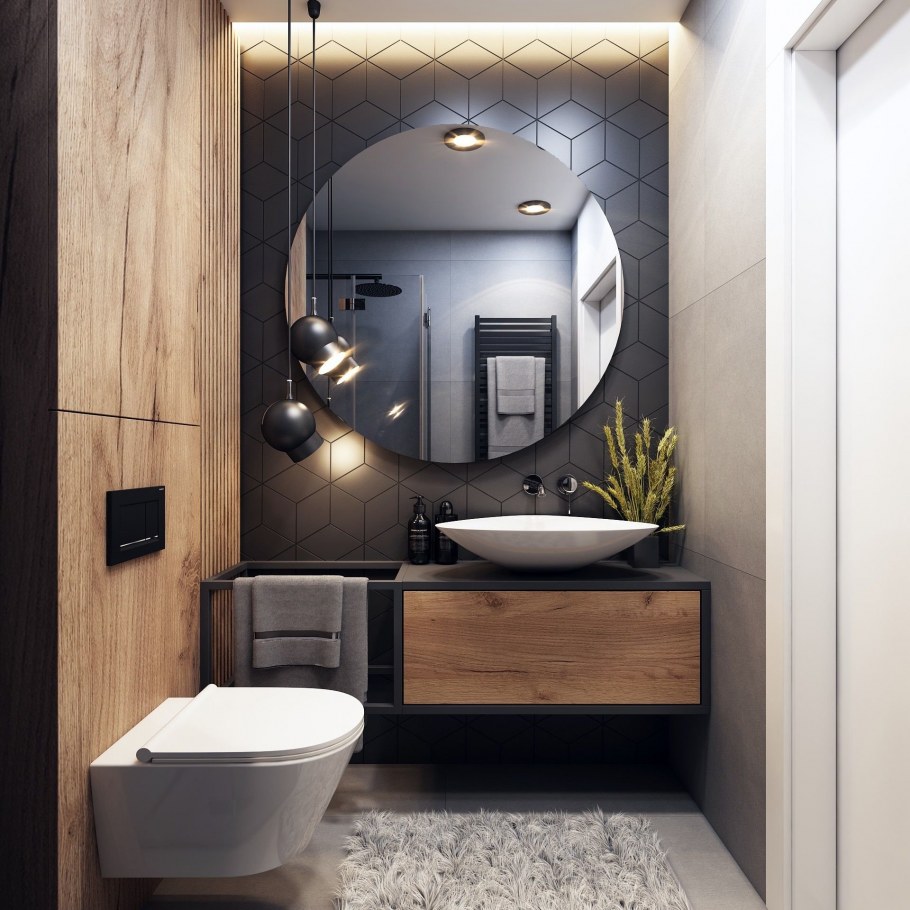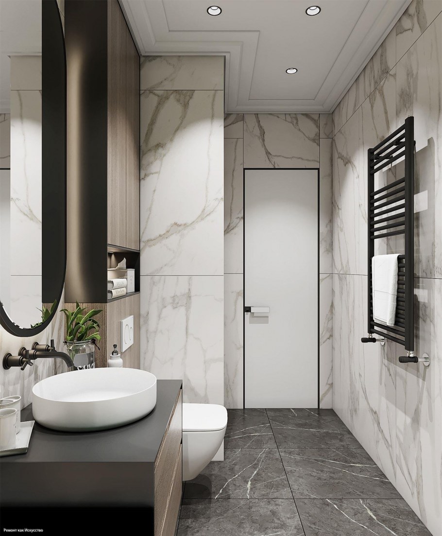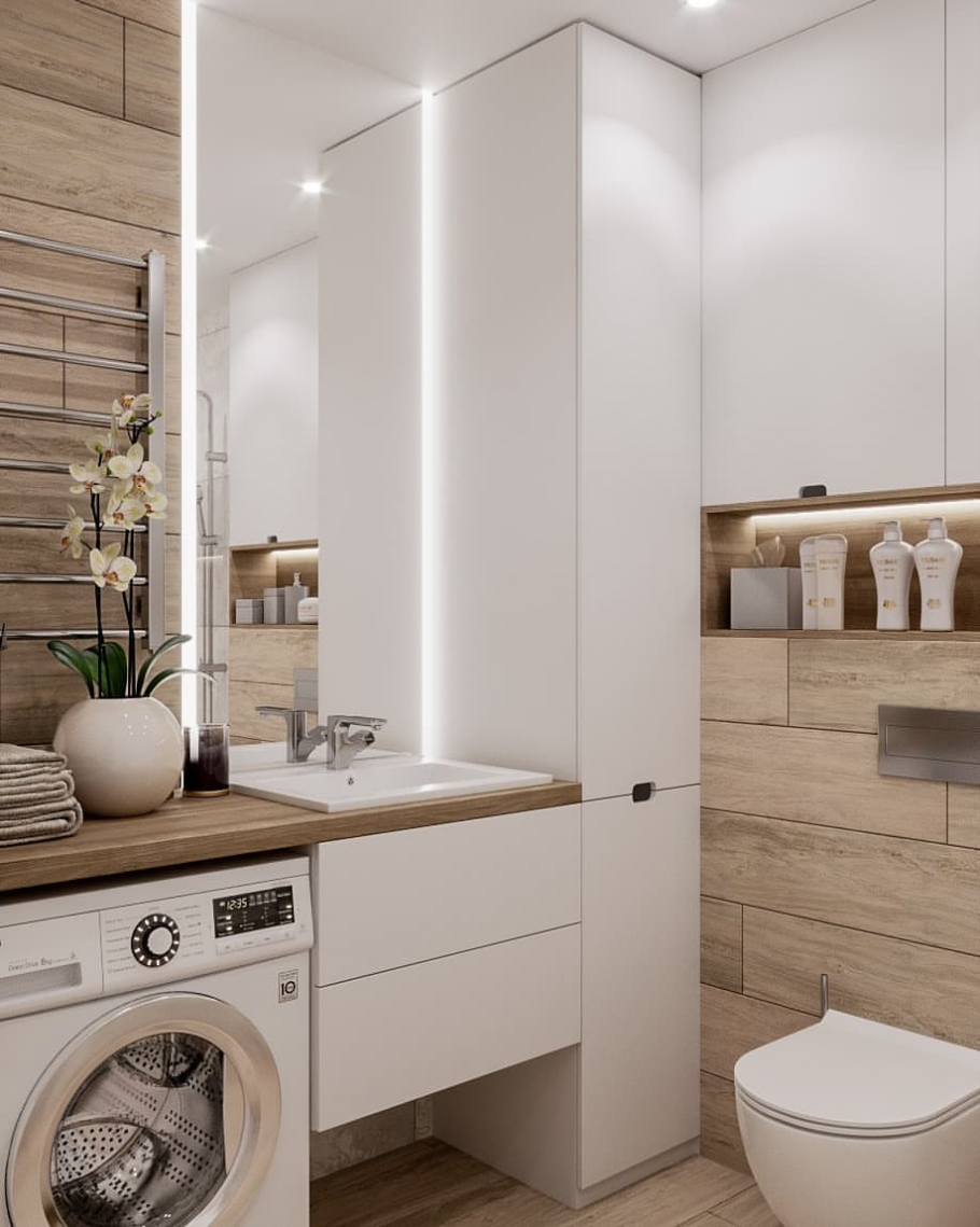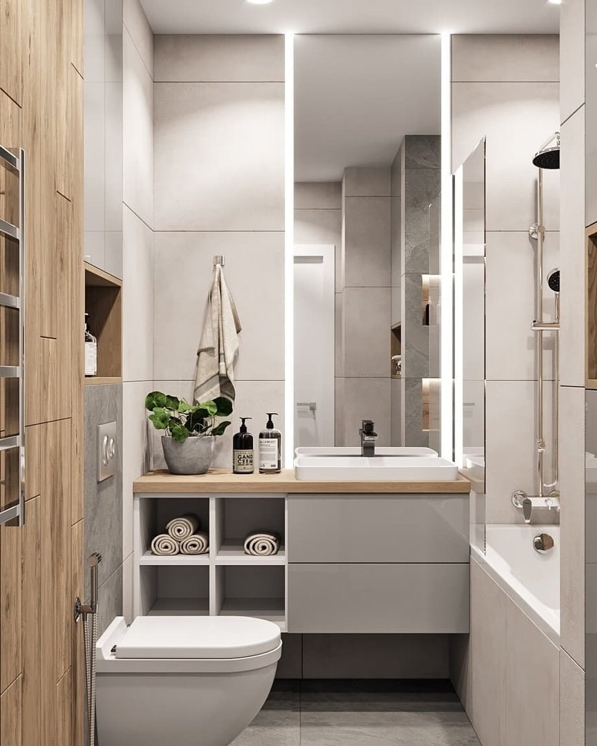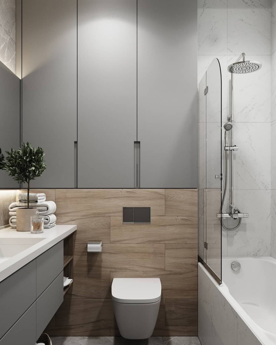 Интерьеры небольших ванных комнат в современном стиле (82 фото)