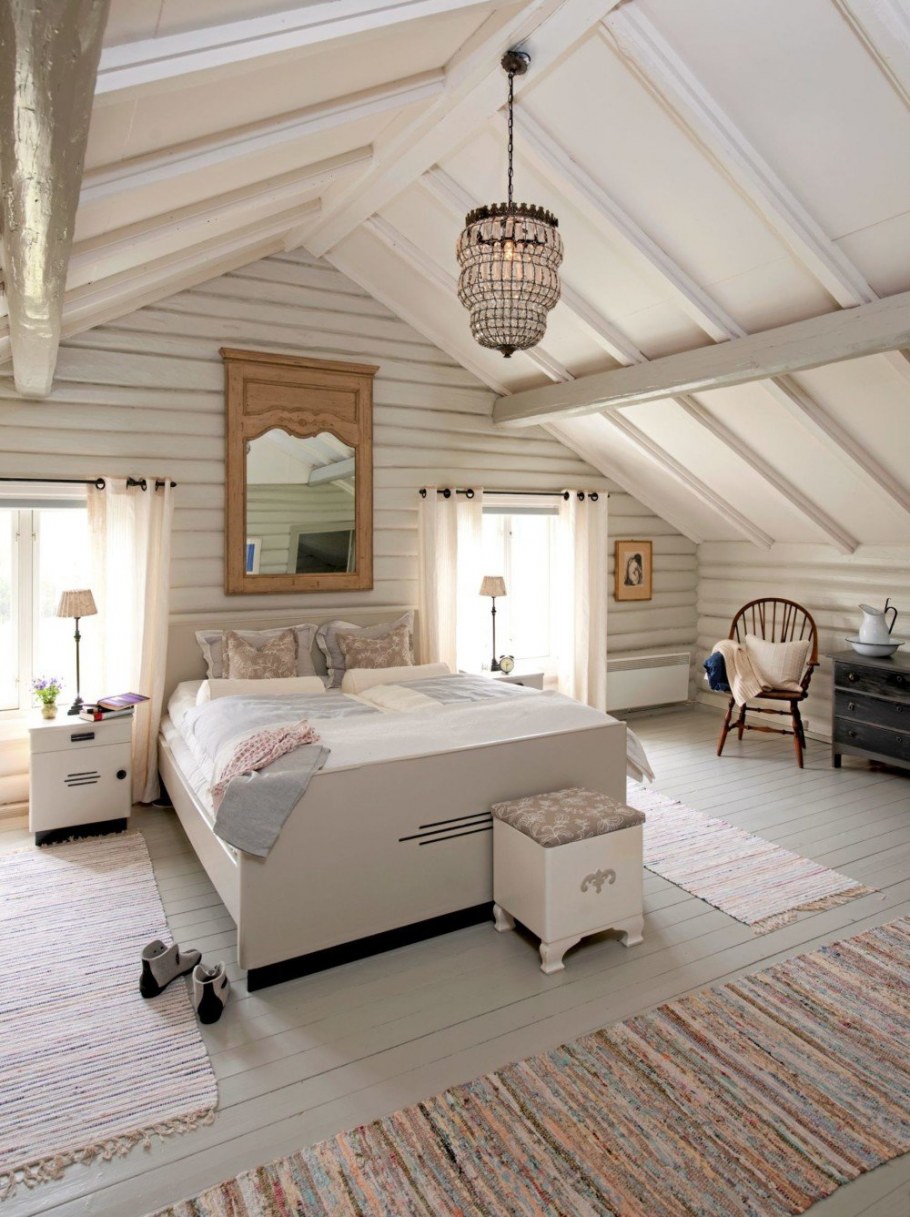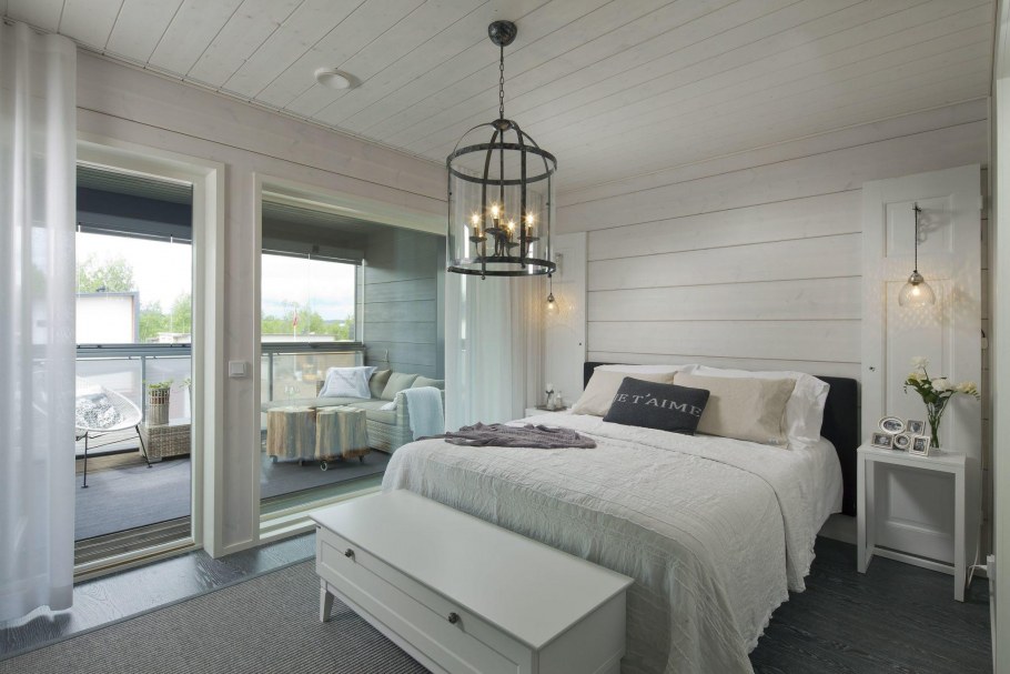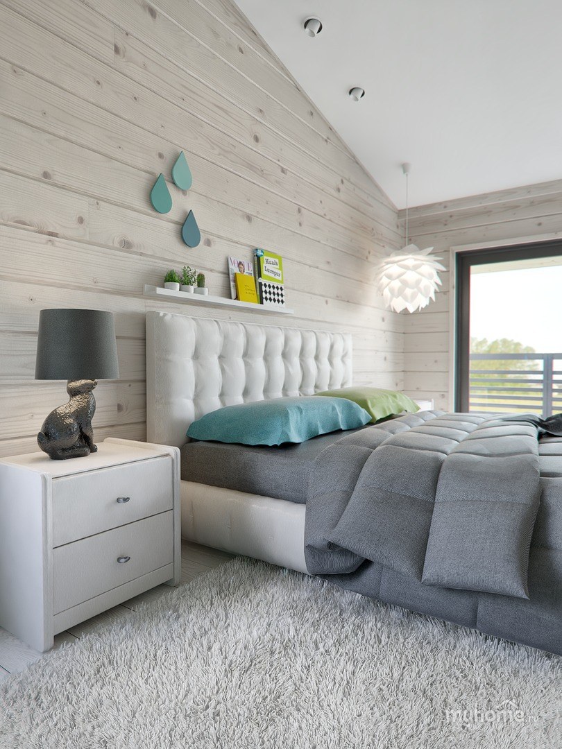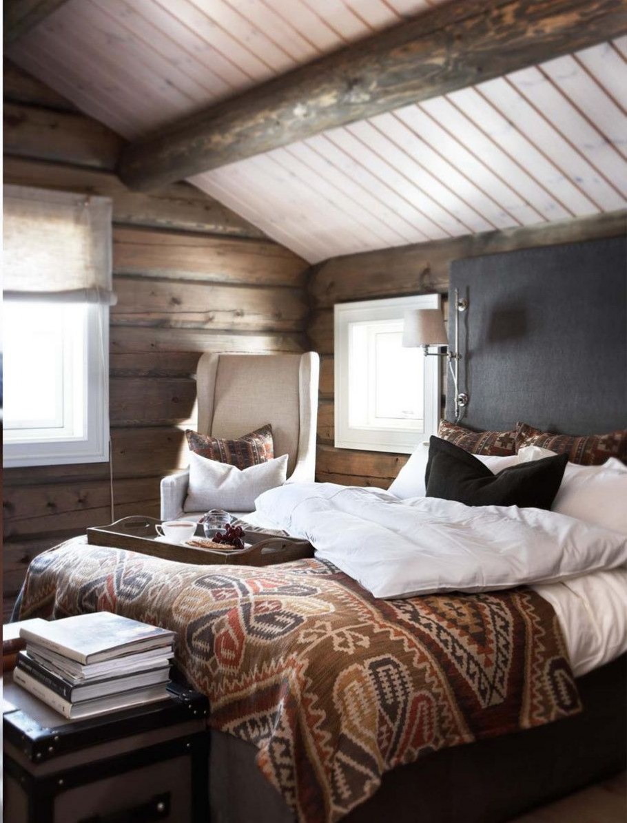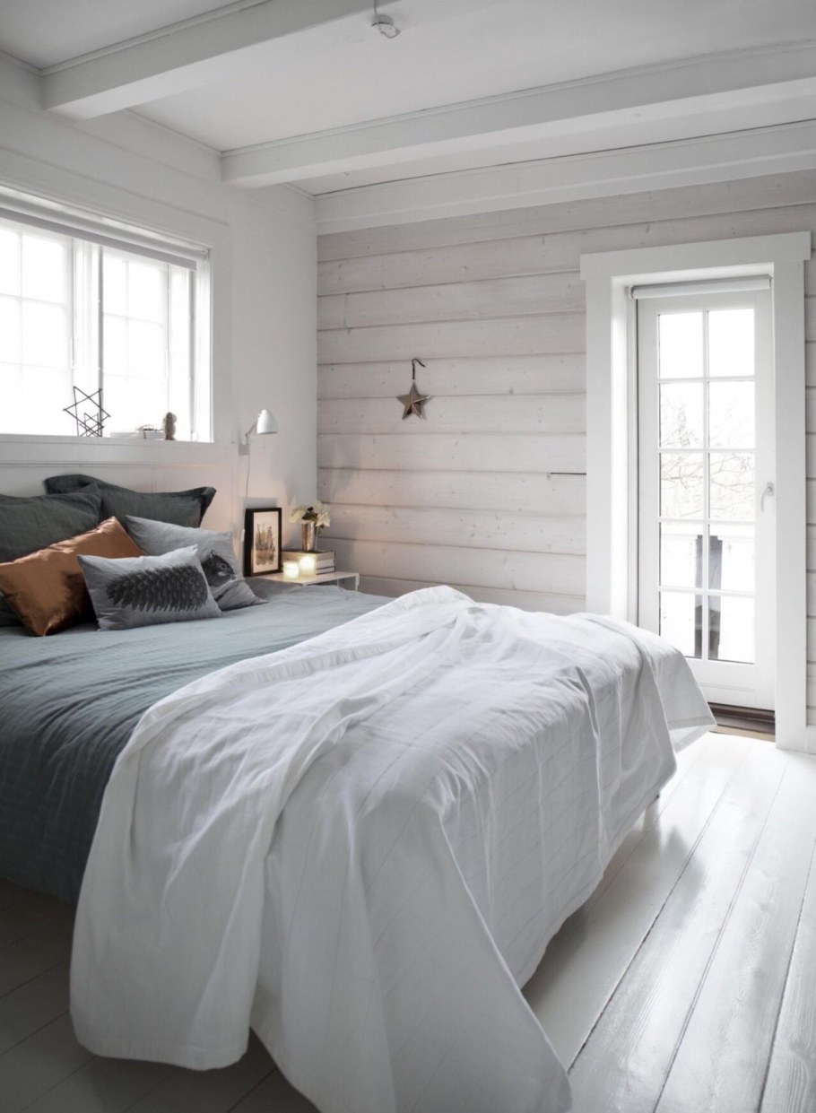 Спальня в скандинавском стиле в деревянном доме (79 фото)