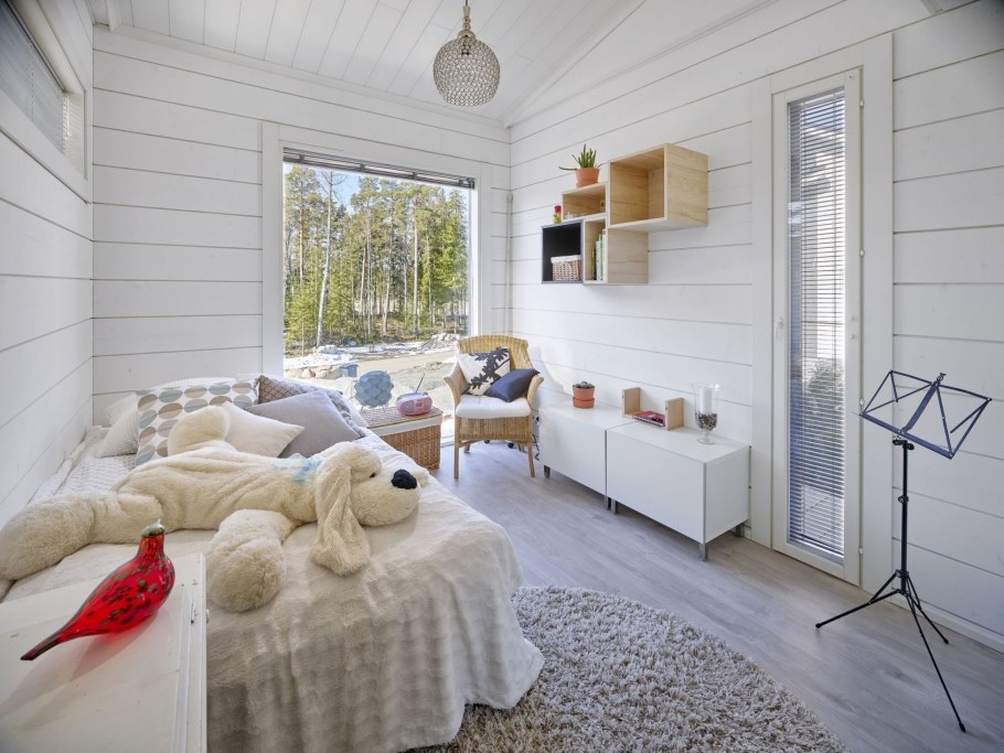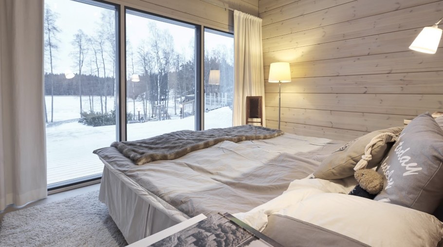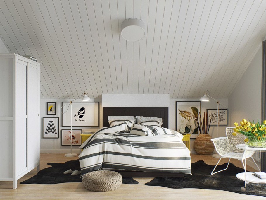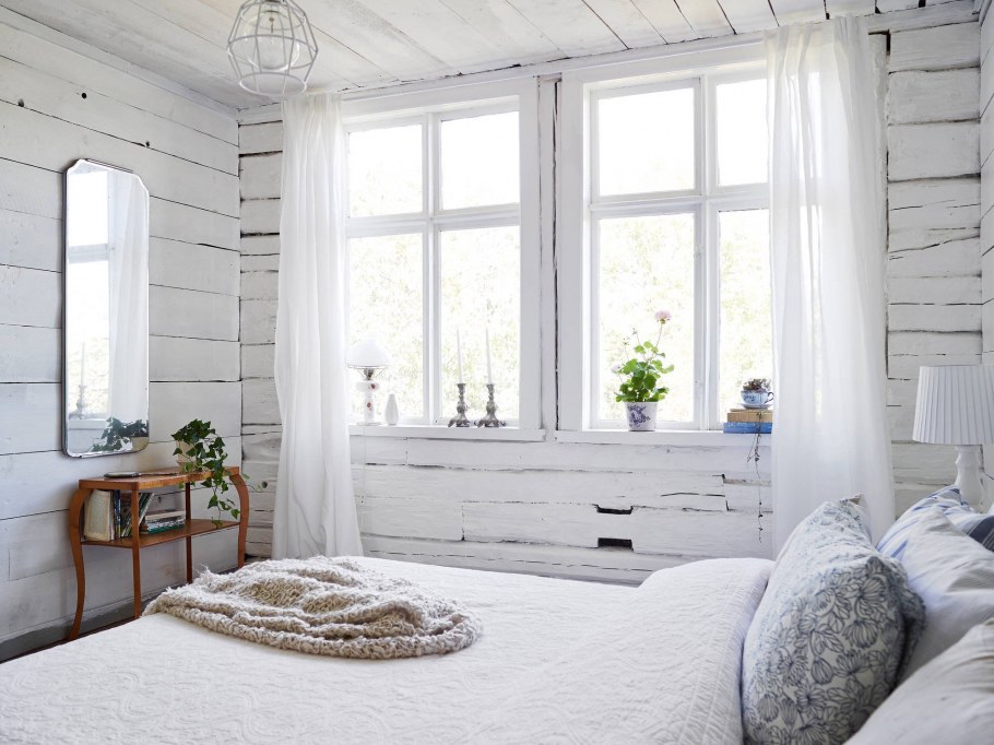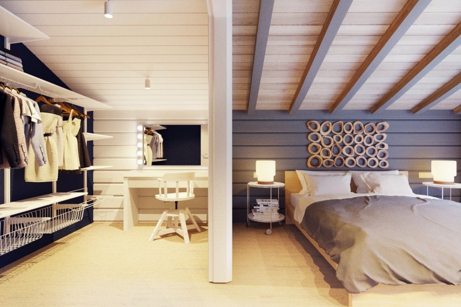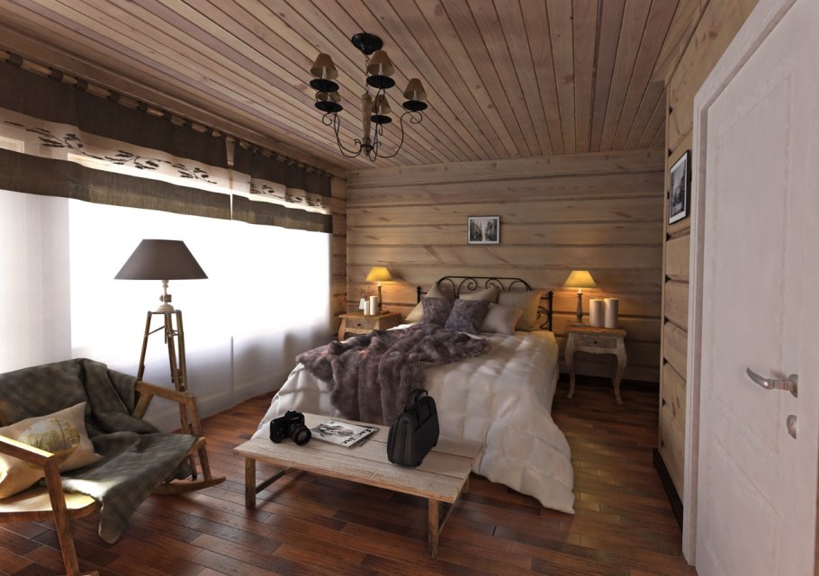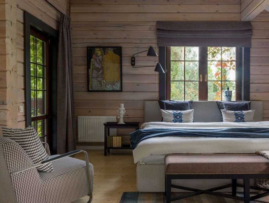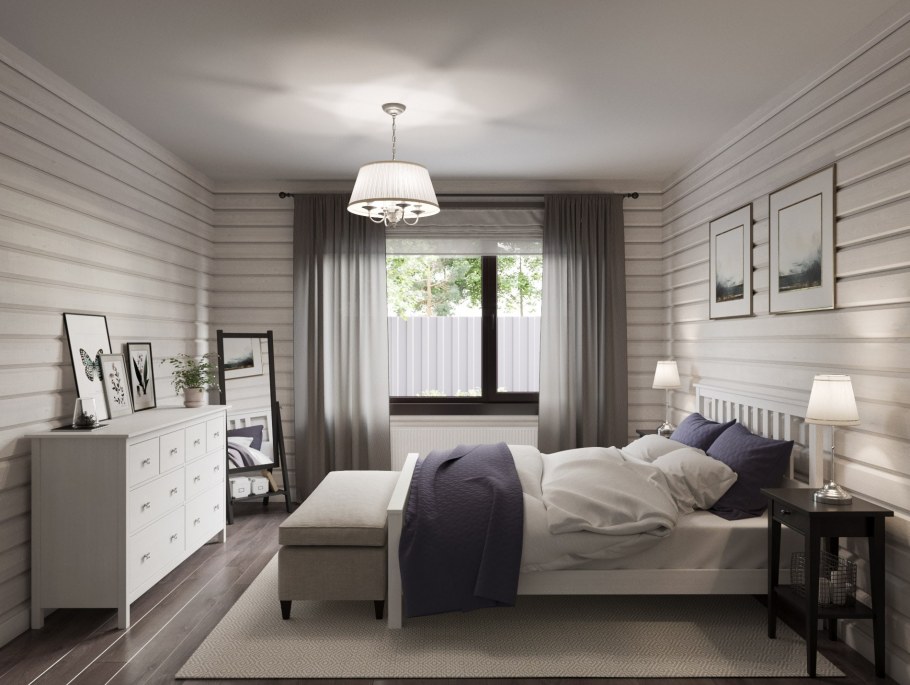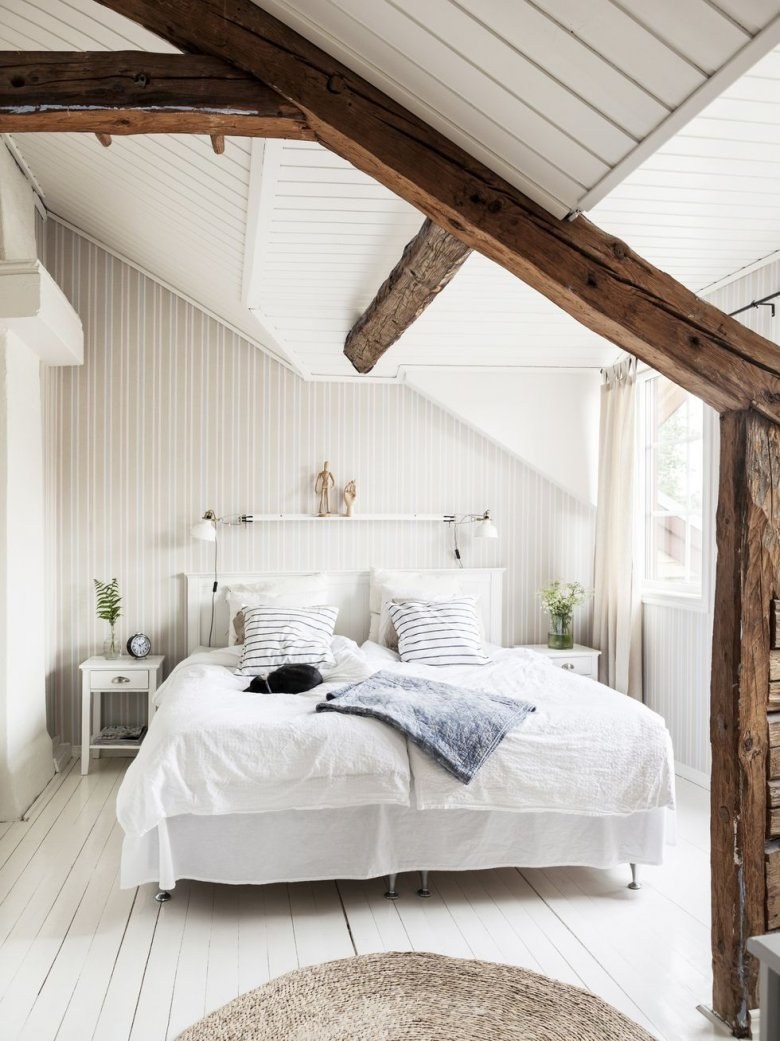 Спальня в скандинавском стиле в деревянном доме (79 фото)