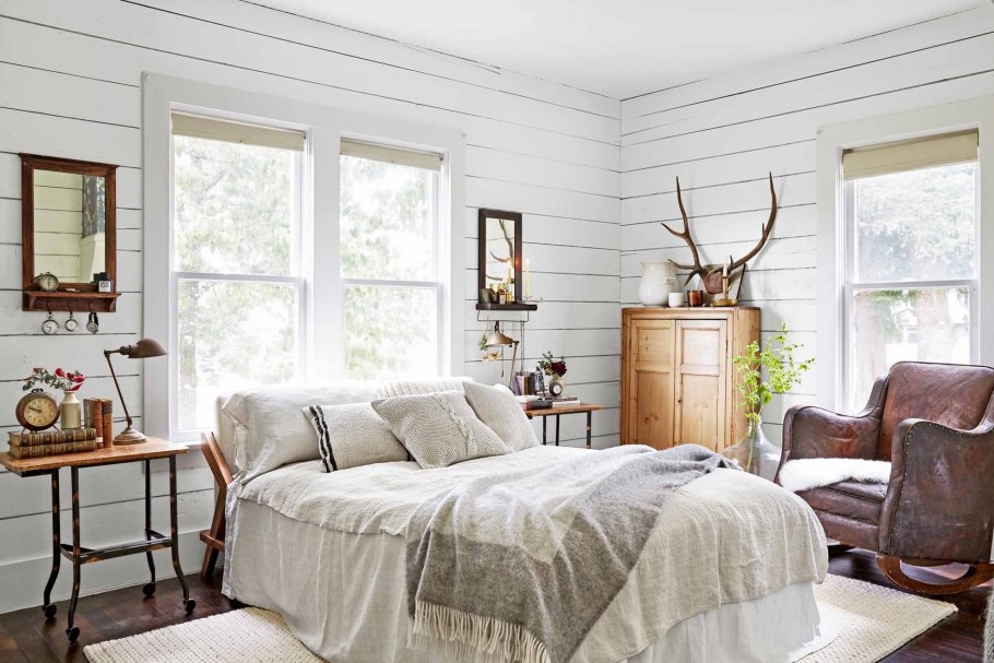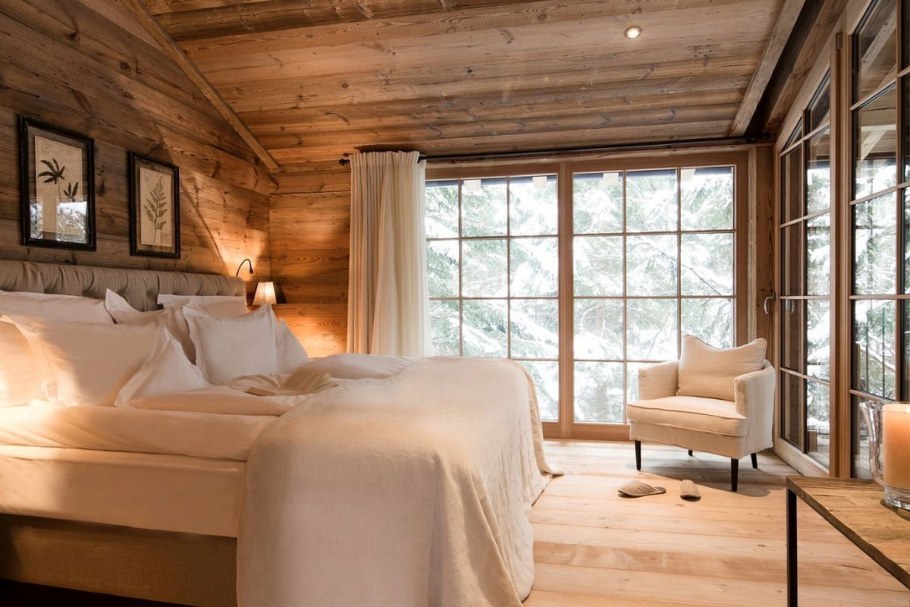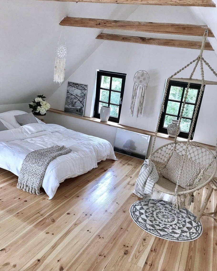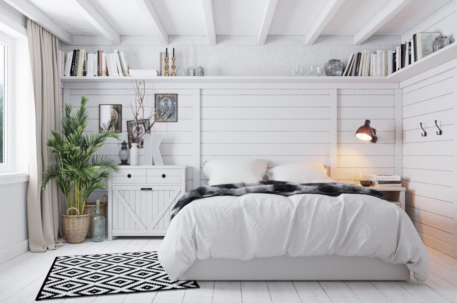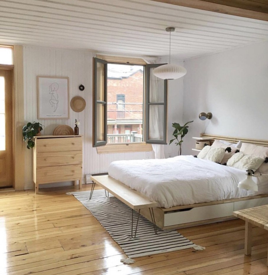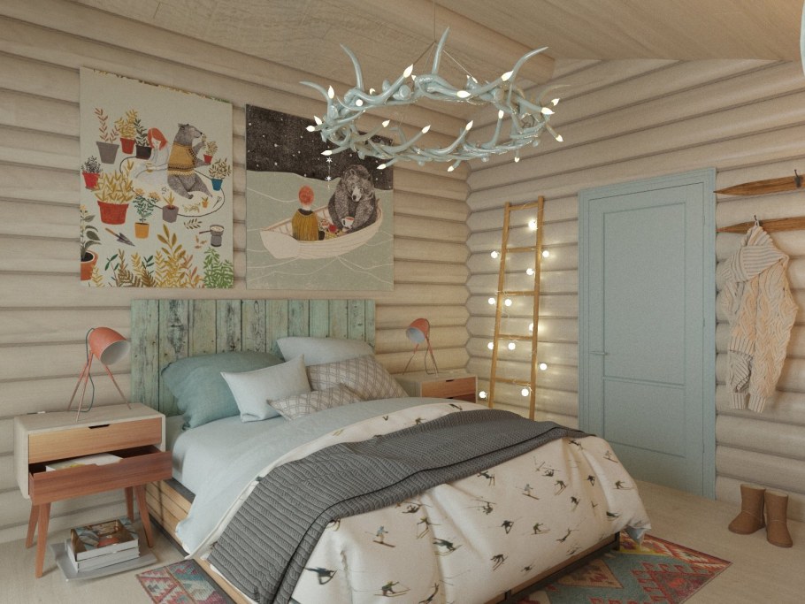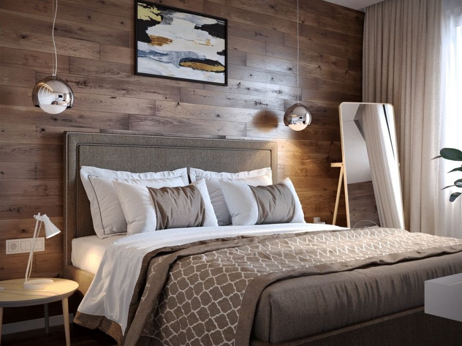 Спальня в скандинавском стиле в деревянном доме (79 фото)
