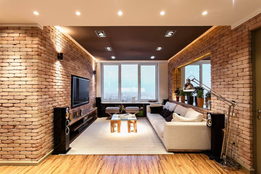Отделка кирпичом в интерьере