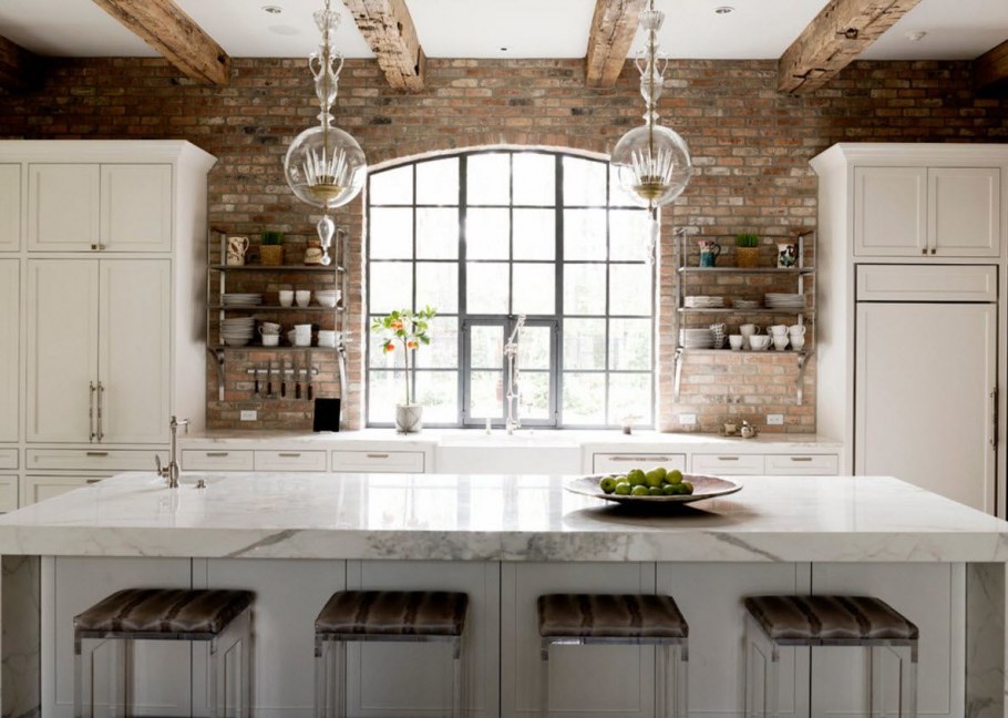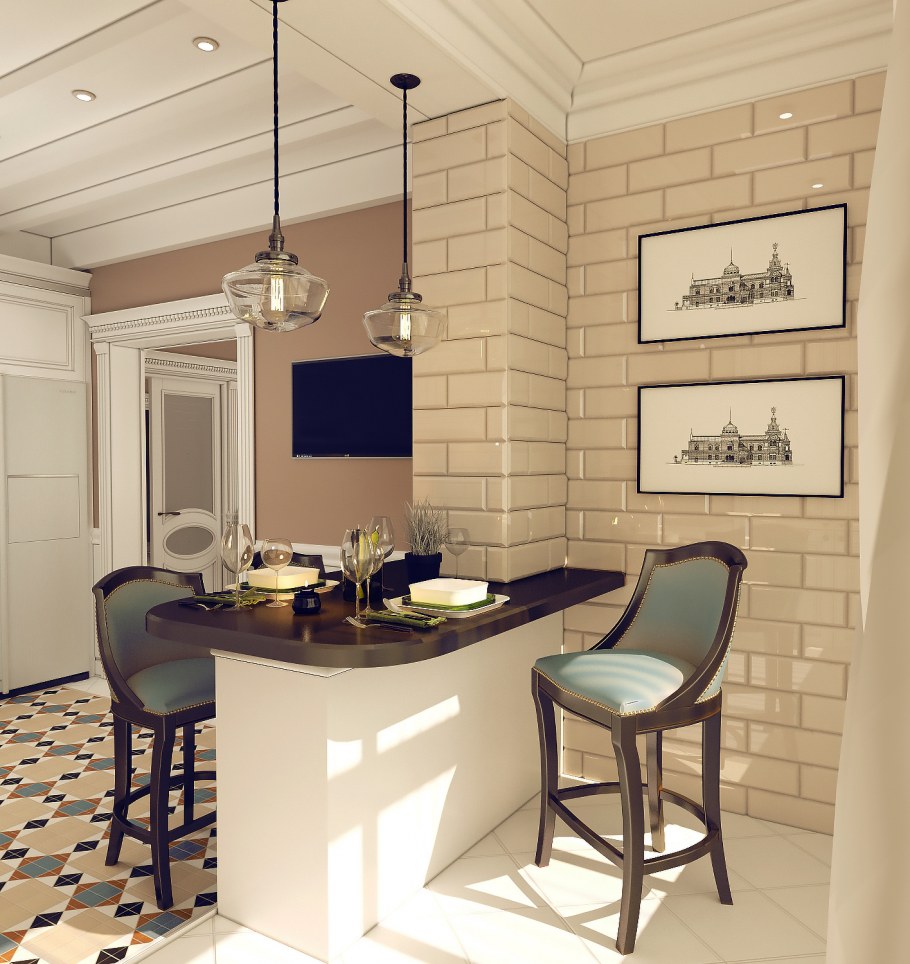 Белые кирпичики в интерьере кухни