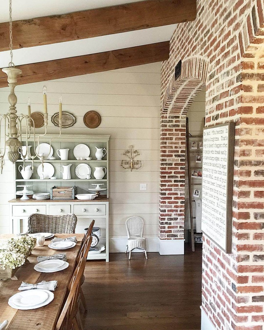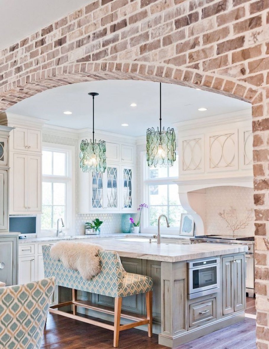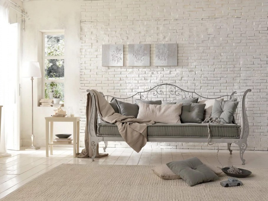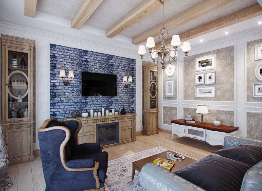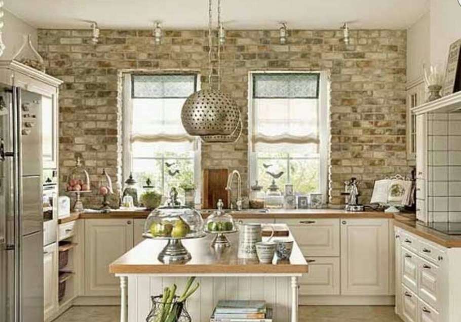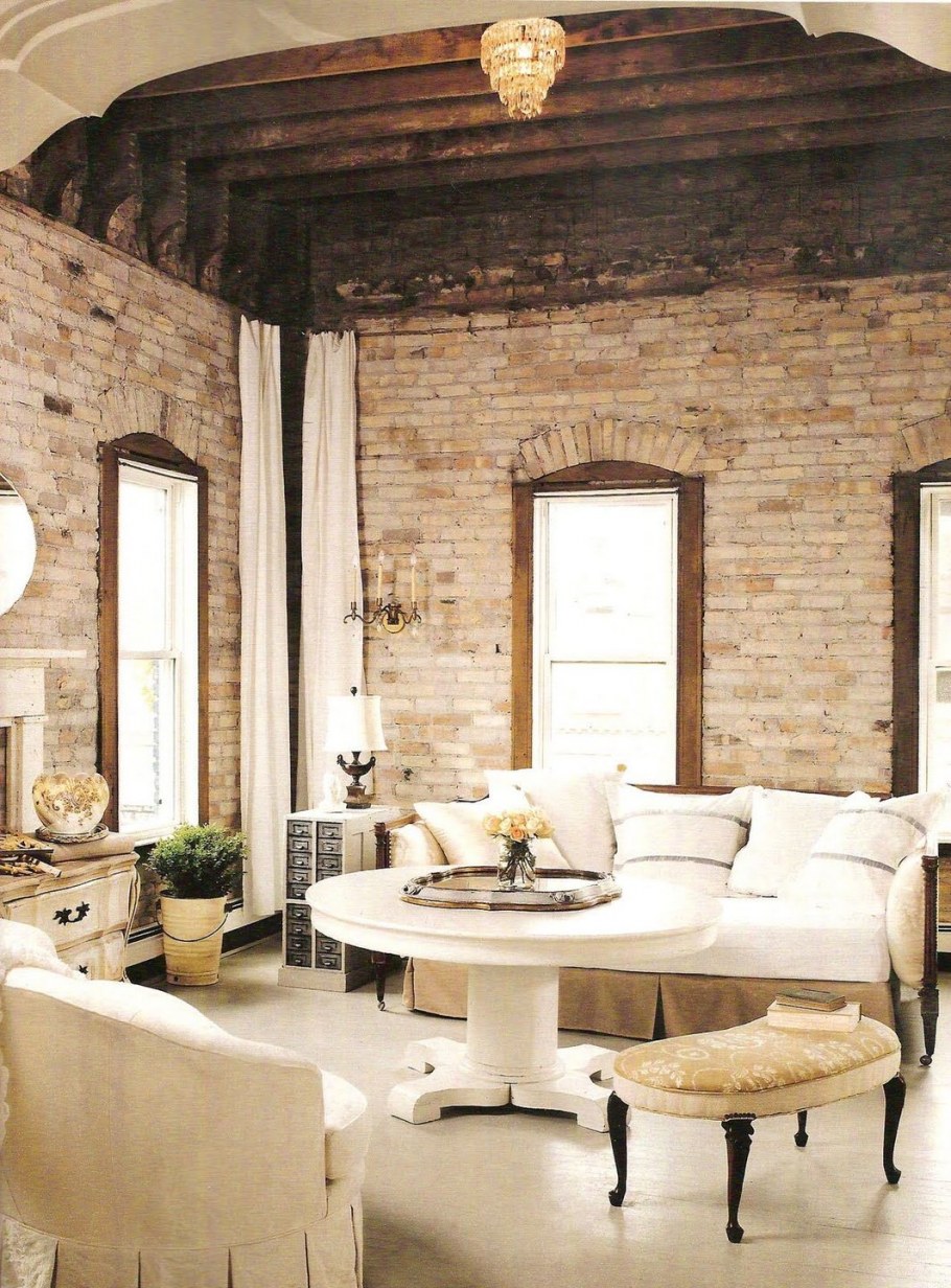 Кирпичная стена в интерьере прованс (80 фото)