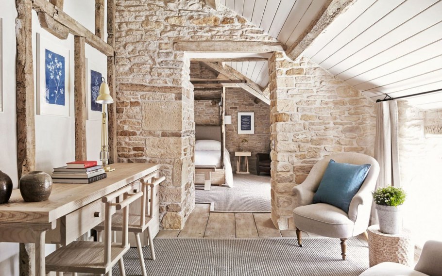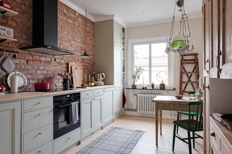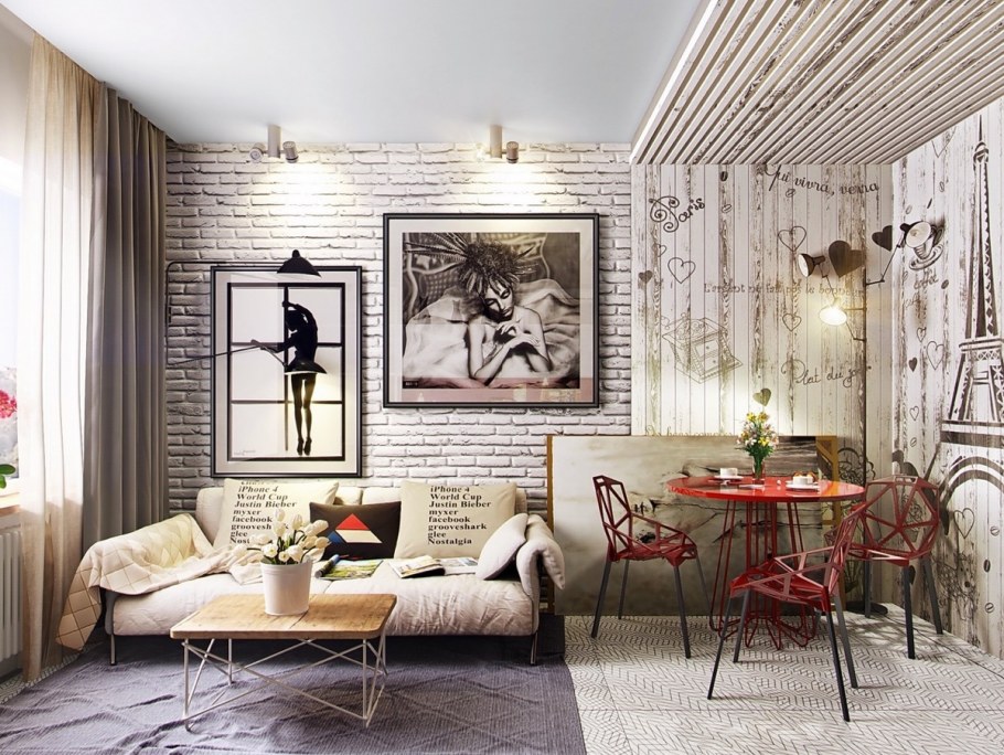 Интерьер с кирпичной стеной в сочетании