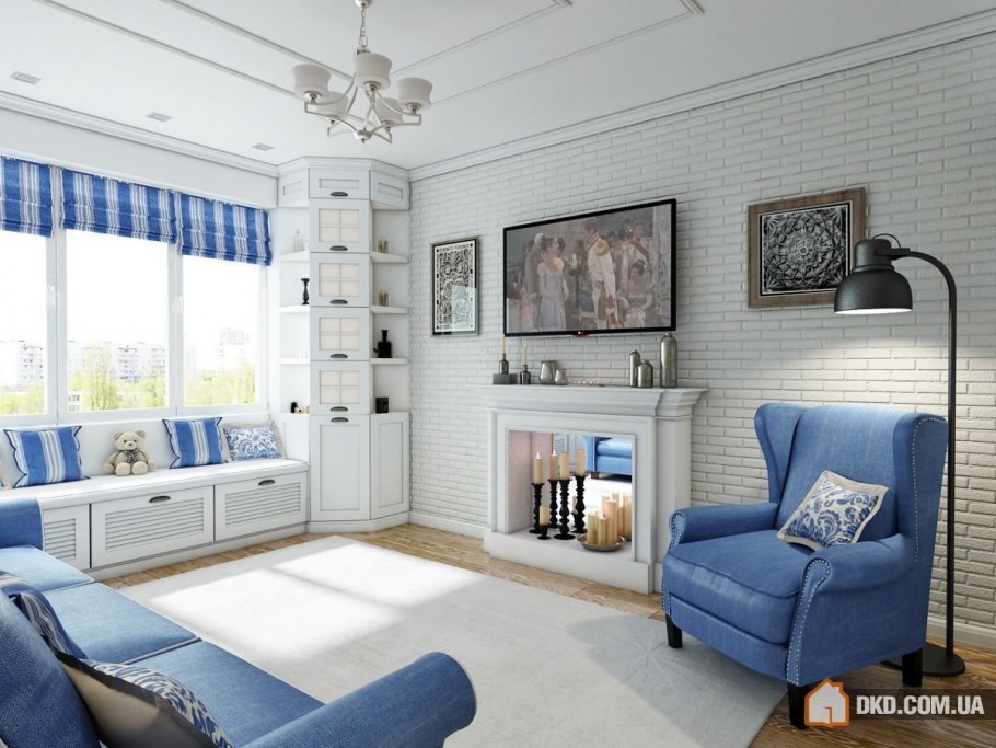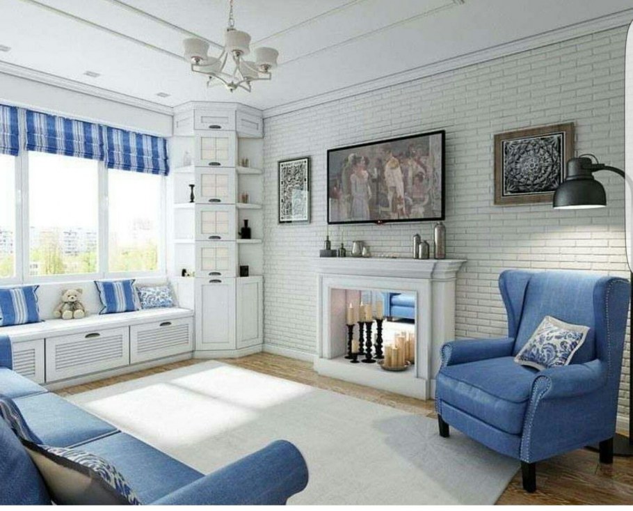 Бело синий интерьер