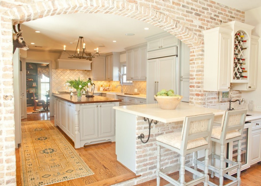 Кирпичная стена на кухне в стиле Прованс