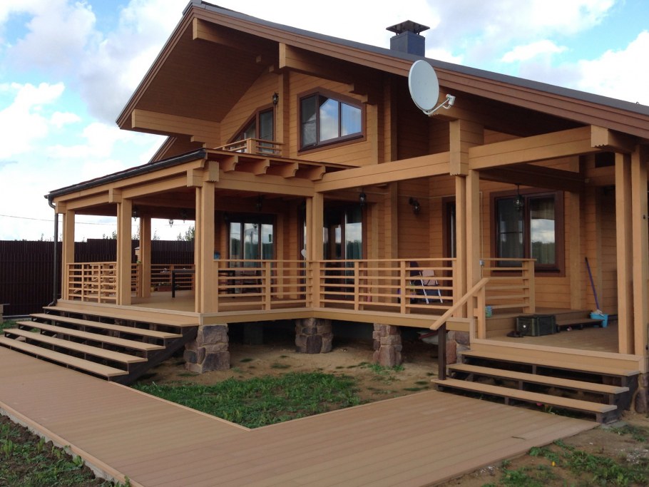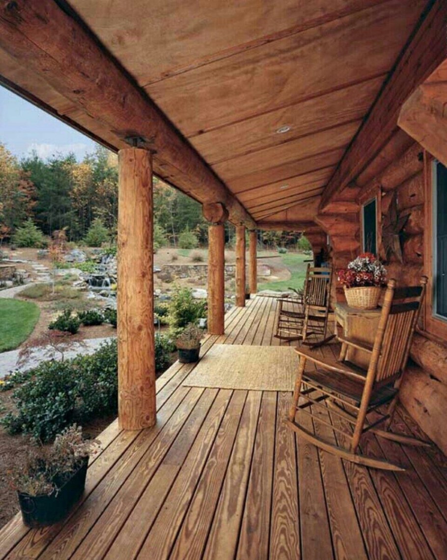 Терраса дома из дерева (80 фото)