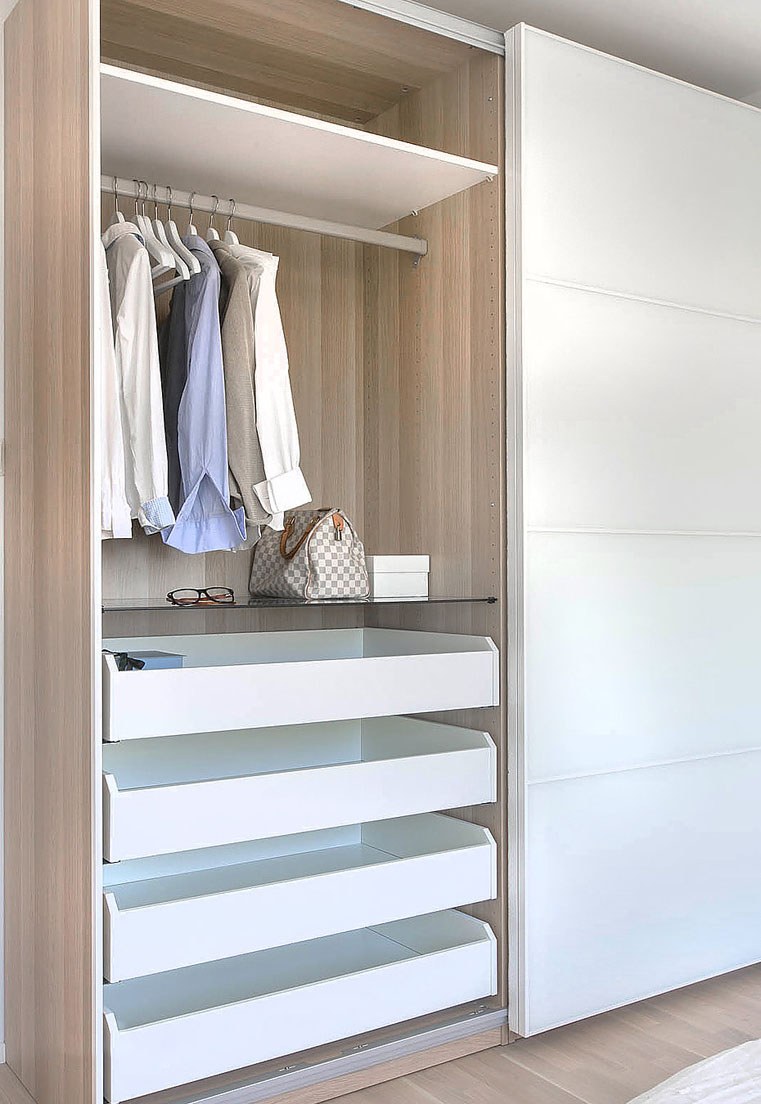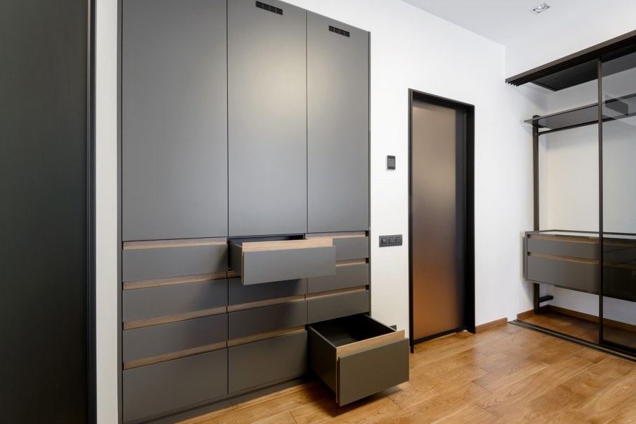 Шкафы с доводчиками без ручек в интерьере (78 фото)