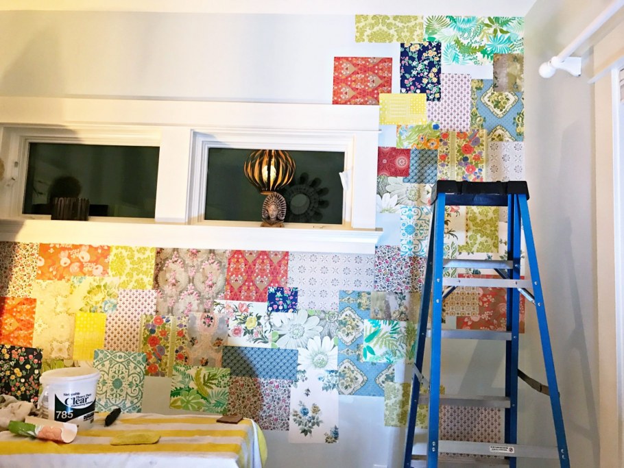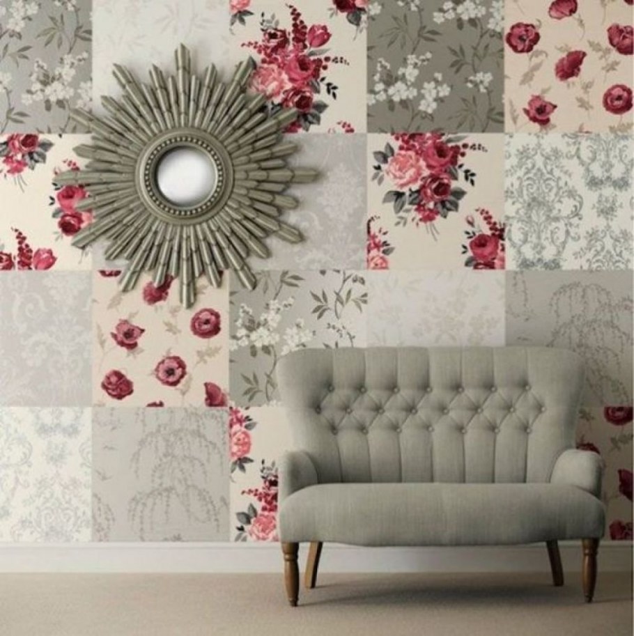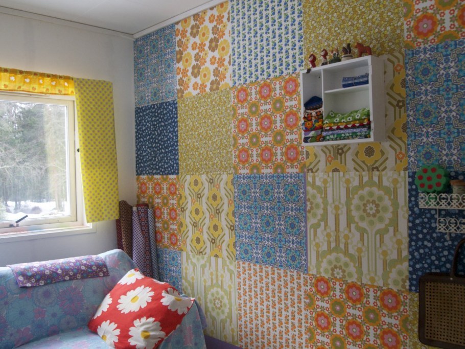 Пэчворк из обоев на стене