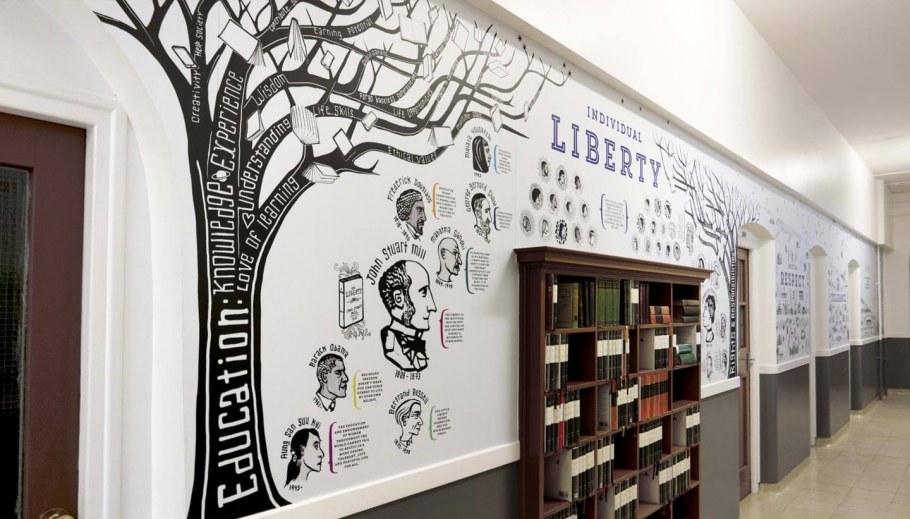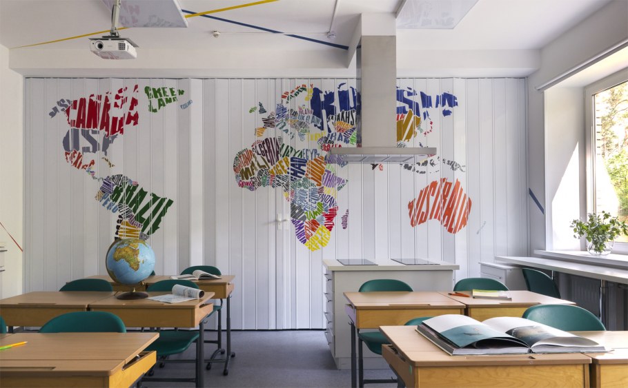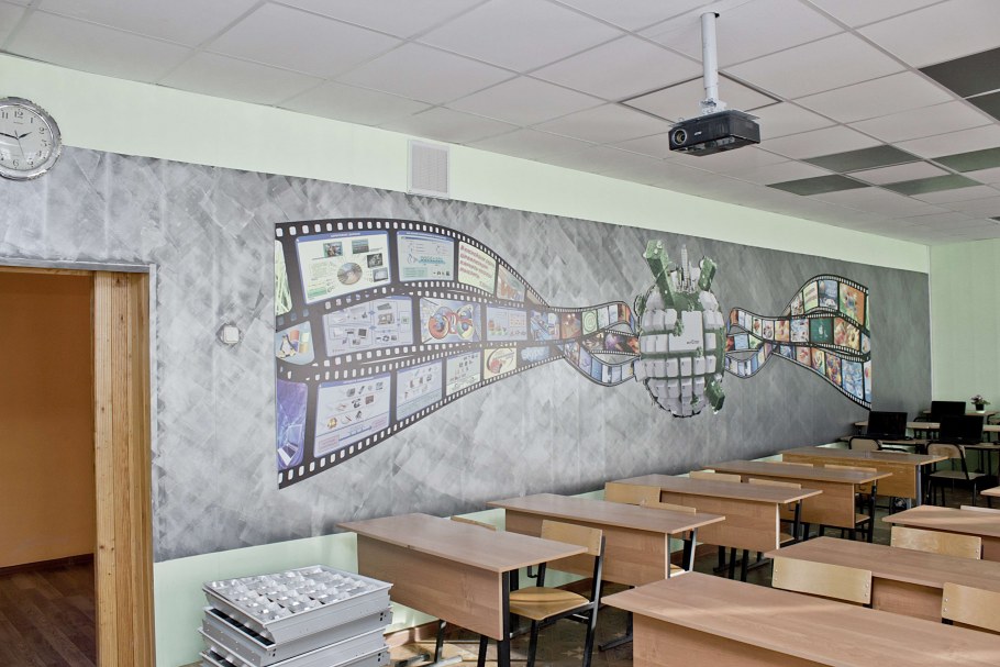 Интересный пример — использование меловой краски на одной из стен. Это превратило поверхность в интерактивную зону, где дети могли рисовать, писать стихи или решать задачи. Декор стены в классе стал не просто украшением, а частью образовательного процесса. Особенно это ценили учителя математики и литературы, которые активно включали стену в уроки. При этом в любой момент поверхность можно было обновить, сохранив гибкость пространства.