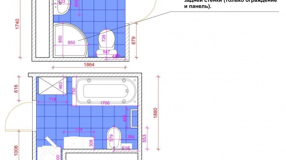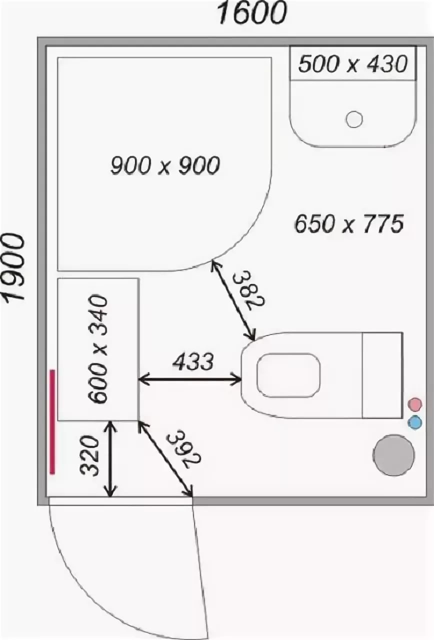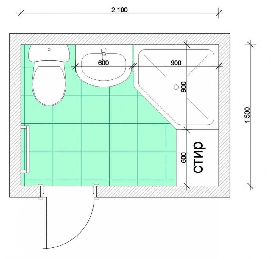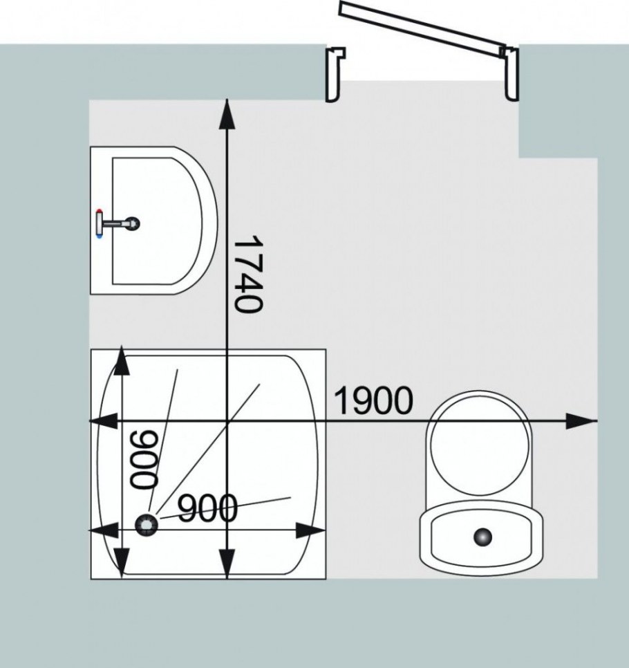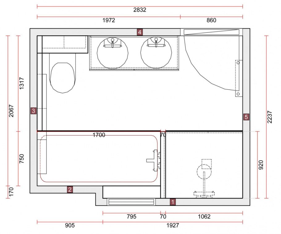 Чертеж ванной комнаты с душевой кабиной 2м на2м
