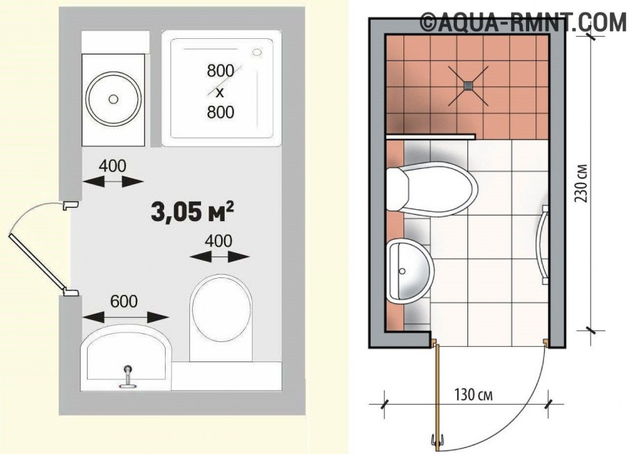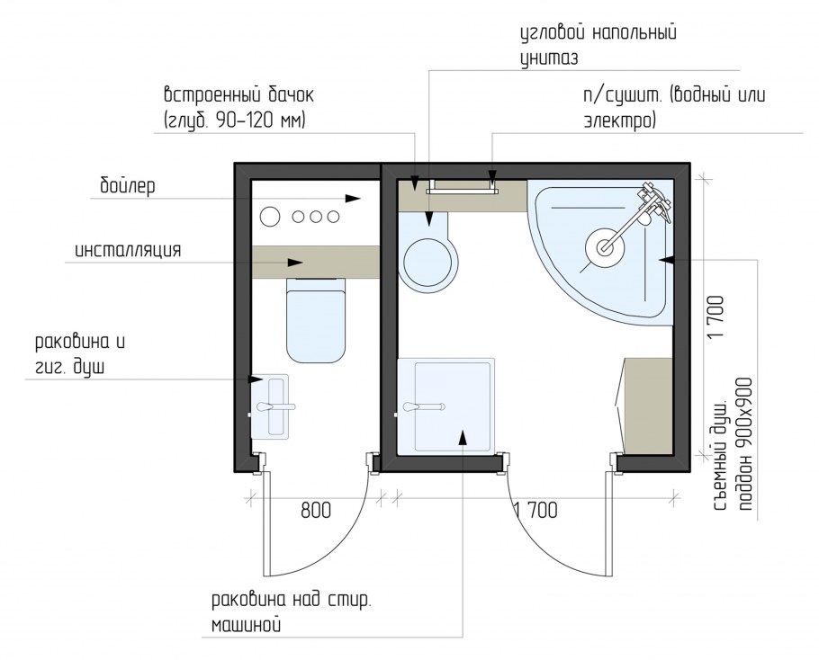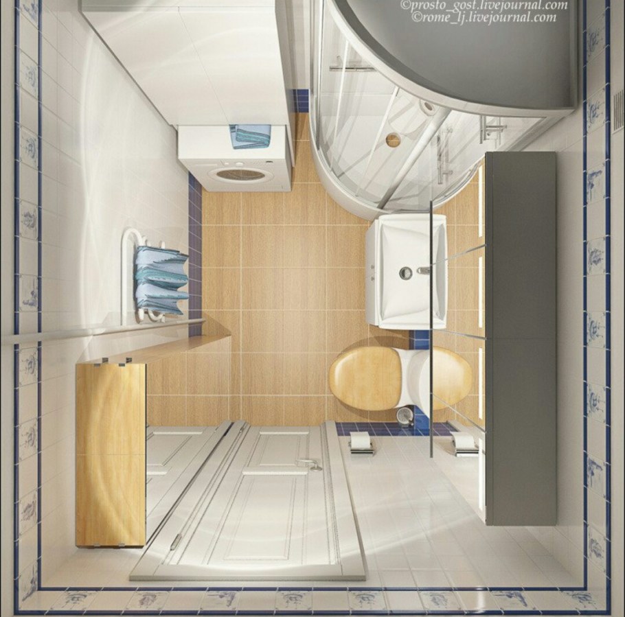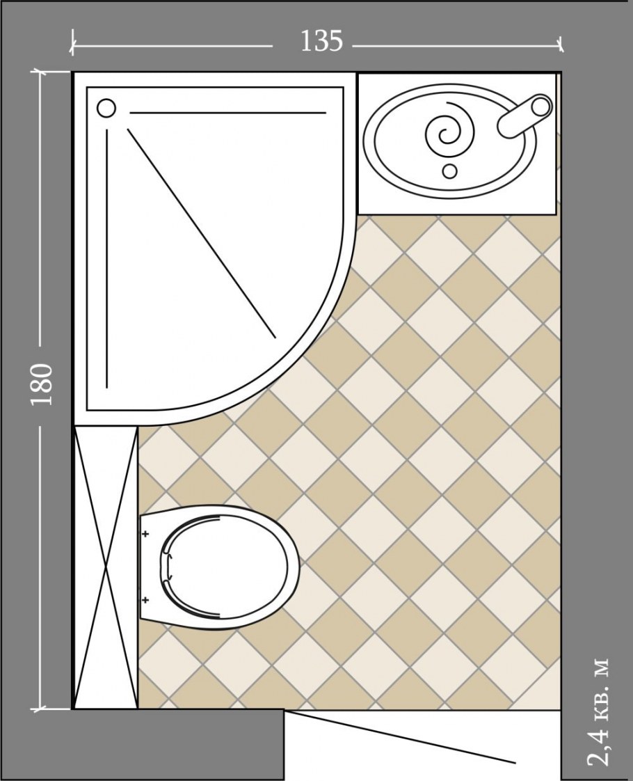 Санузел 4 кв м 2,5х1,5 с душевой кабиной