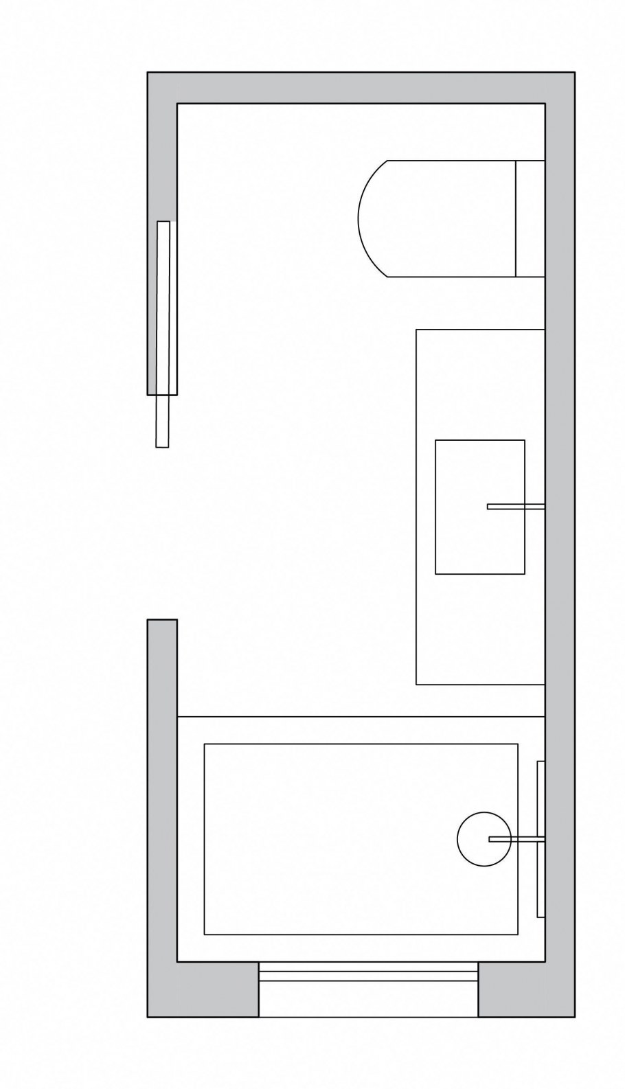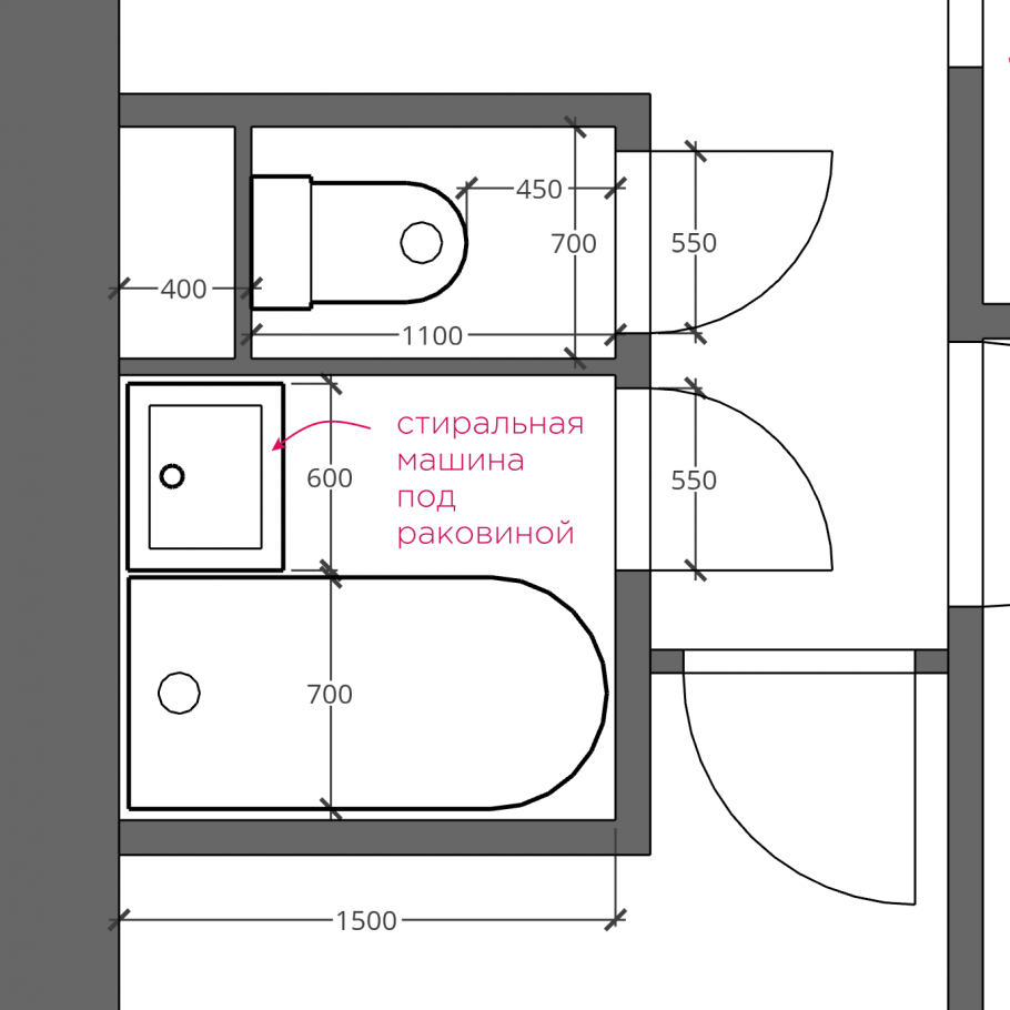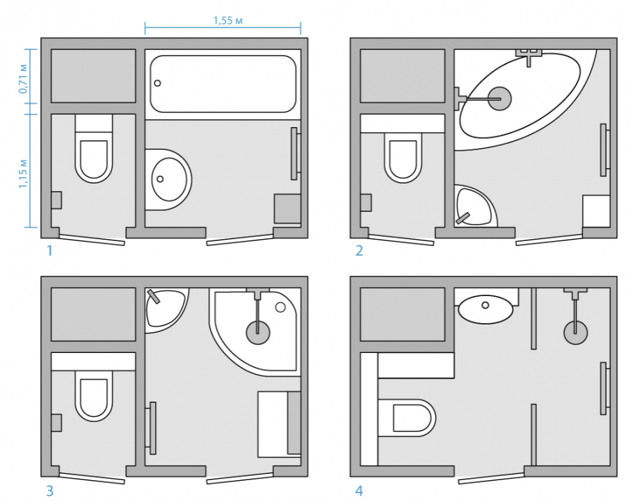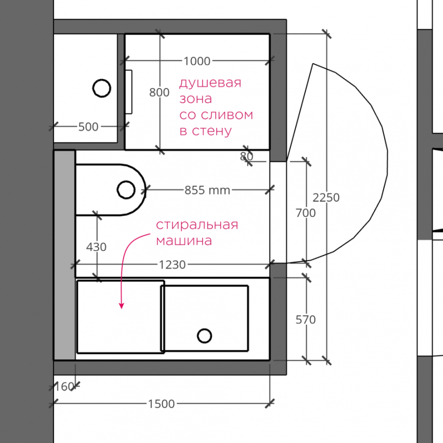 Санузел 4 кв м 2,5х1,5 с душевой кабиной