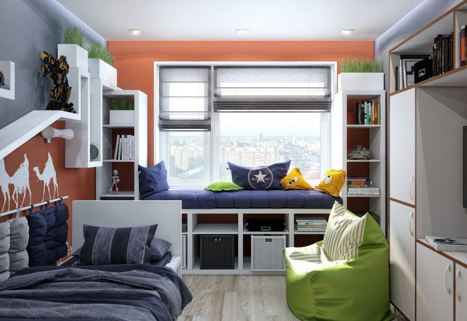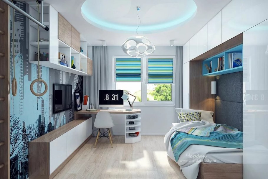 Оформление маленькой комнаты для подростка мальчика (82 фото)