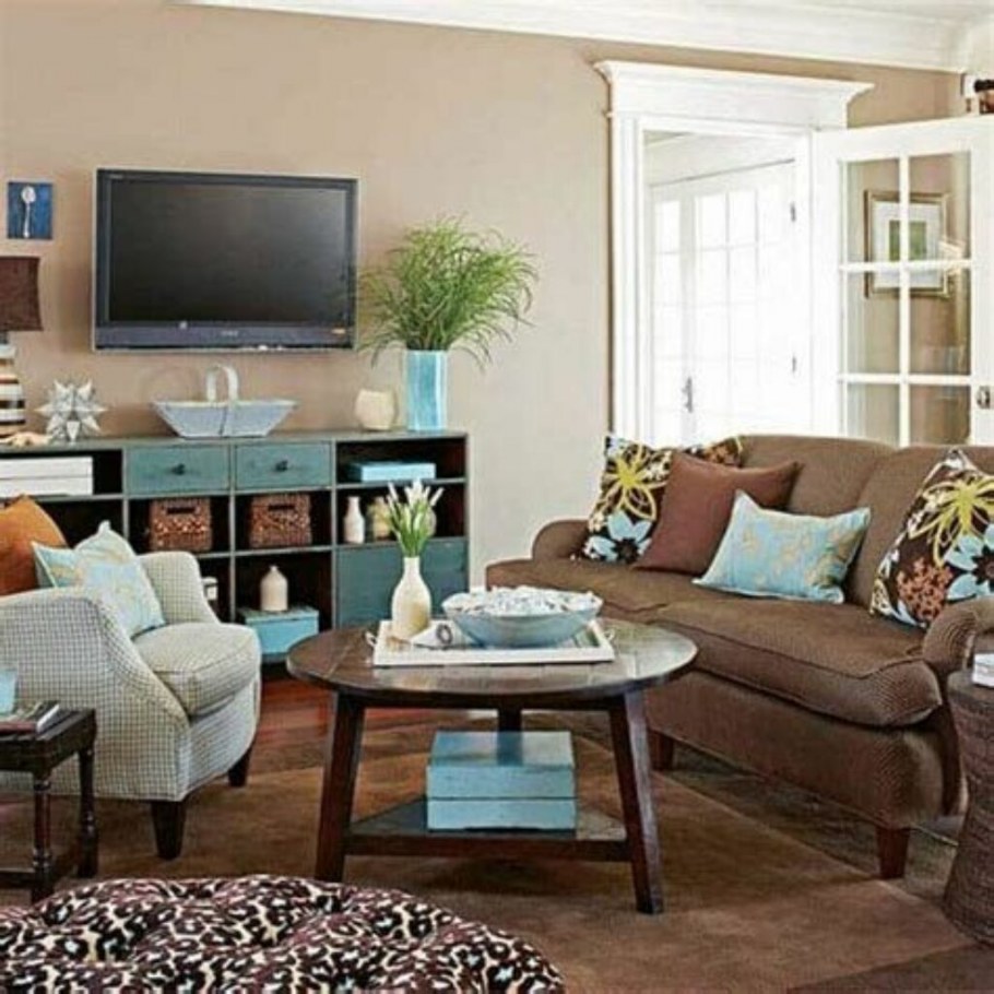 Голубой и коричневый в интерьере