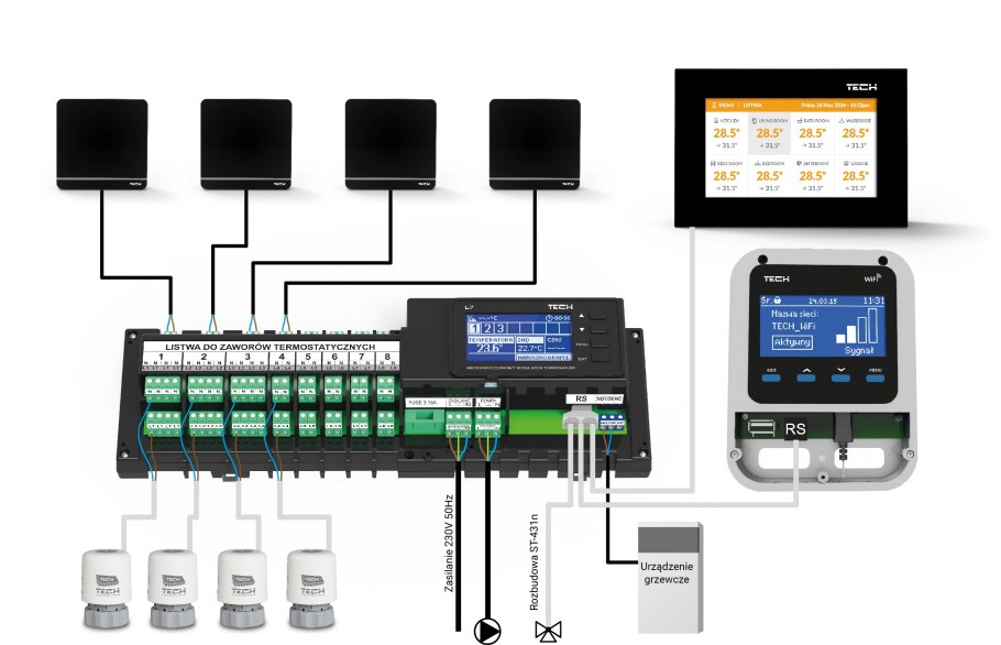 Tech беспроводной контроллер термостатических клапанов l-8e