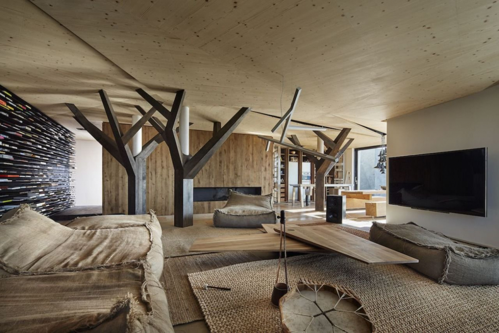 Деревянные столбы в интерьере