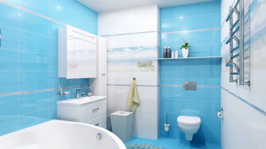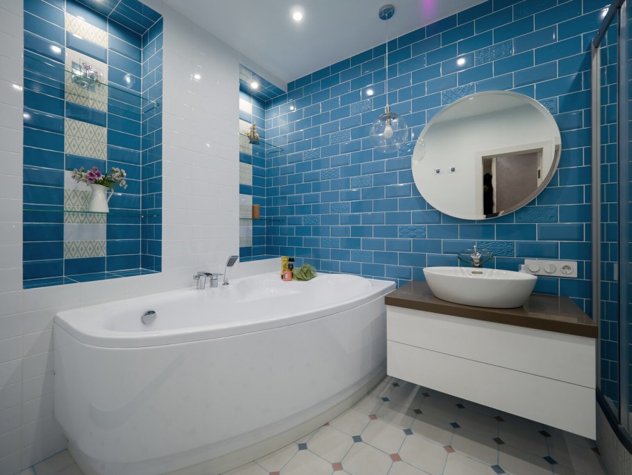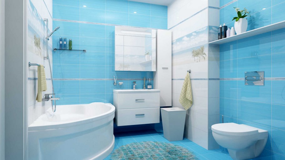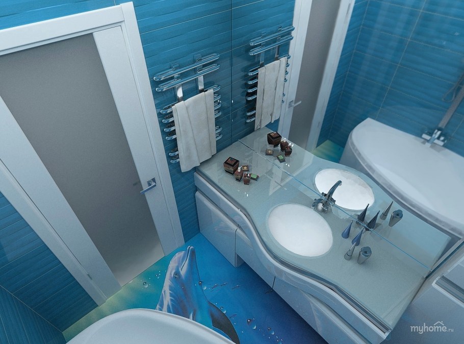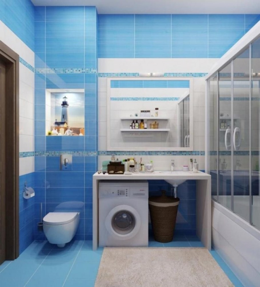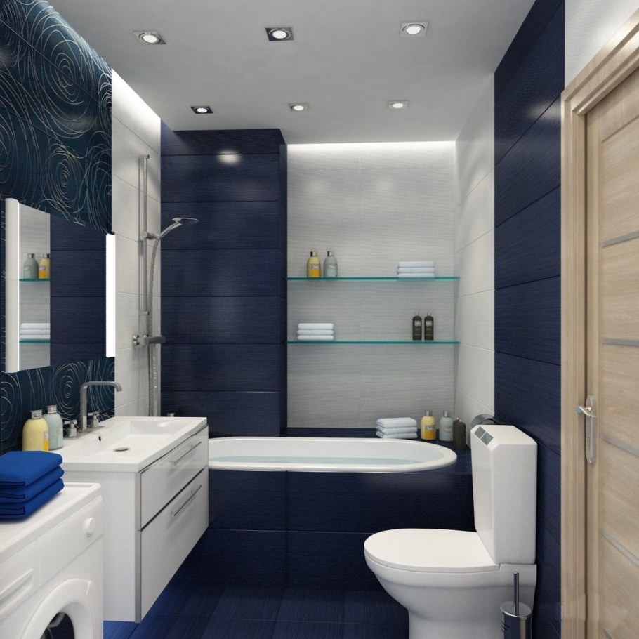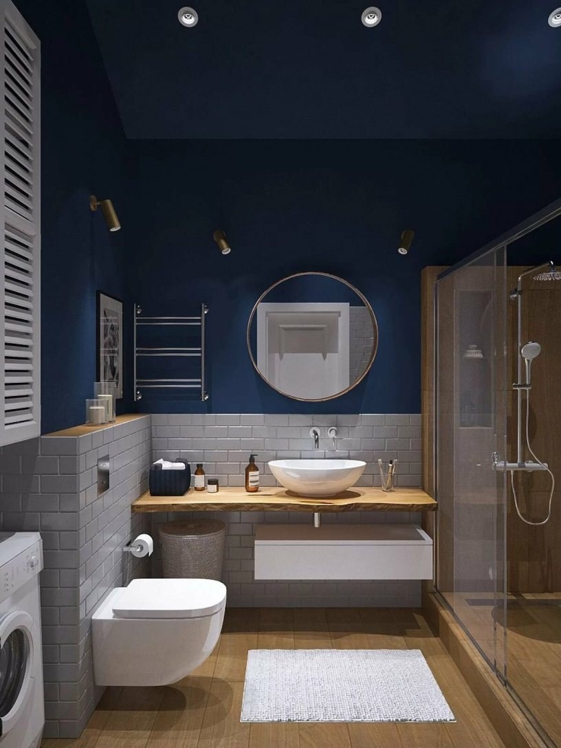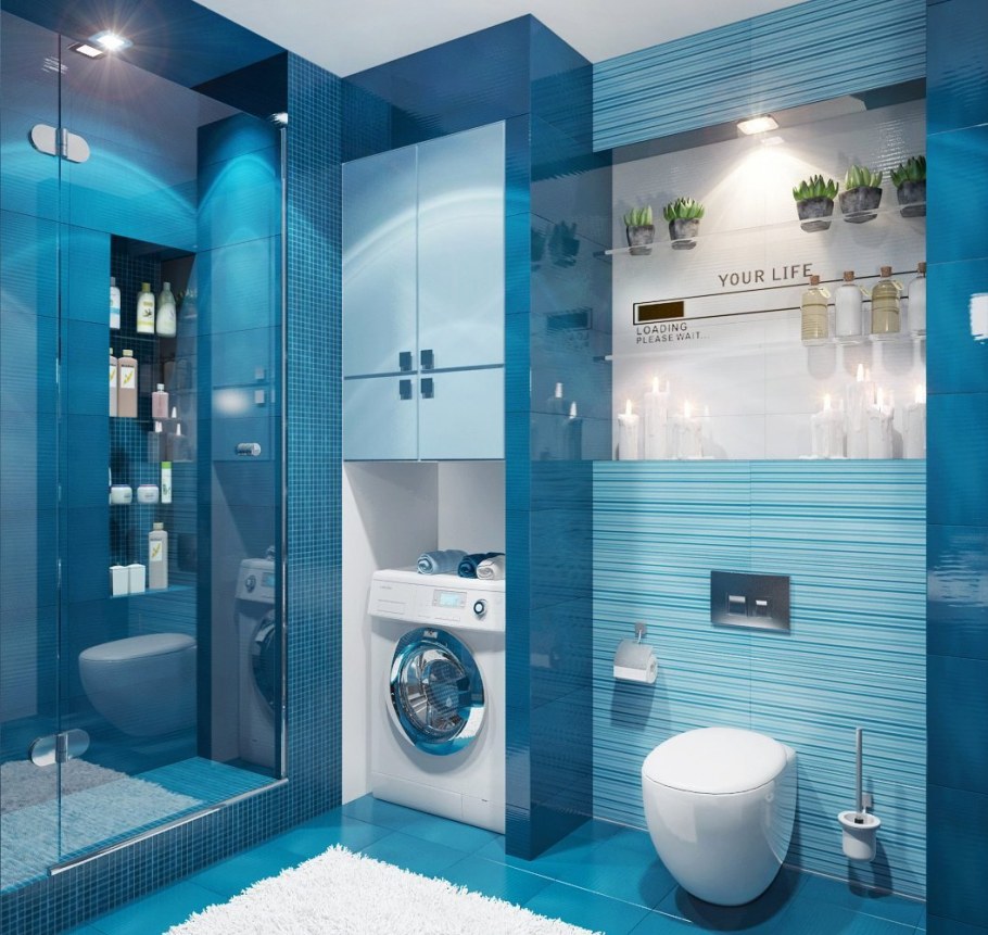 Ванные совмещенные с туалетом в синем цвете (77 фото)