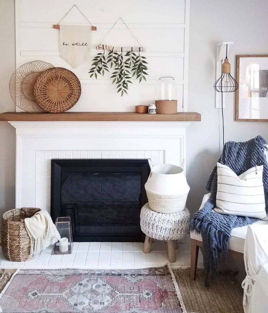 Камин в скандинавском стиле с бохо