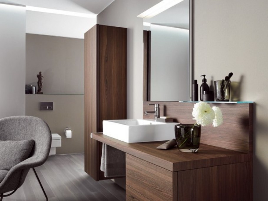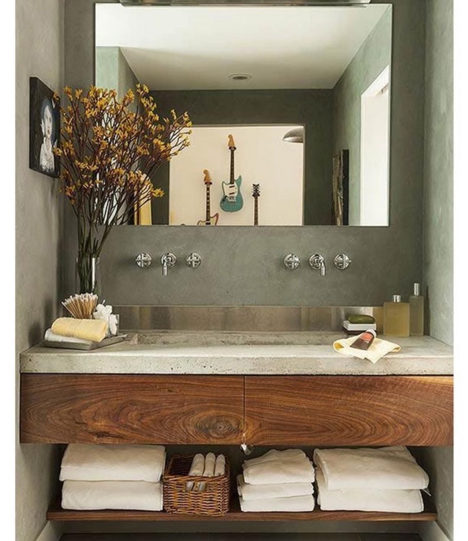Современная ванная комната с деревянной столешницей