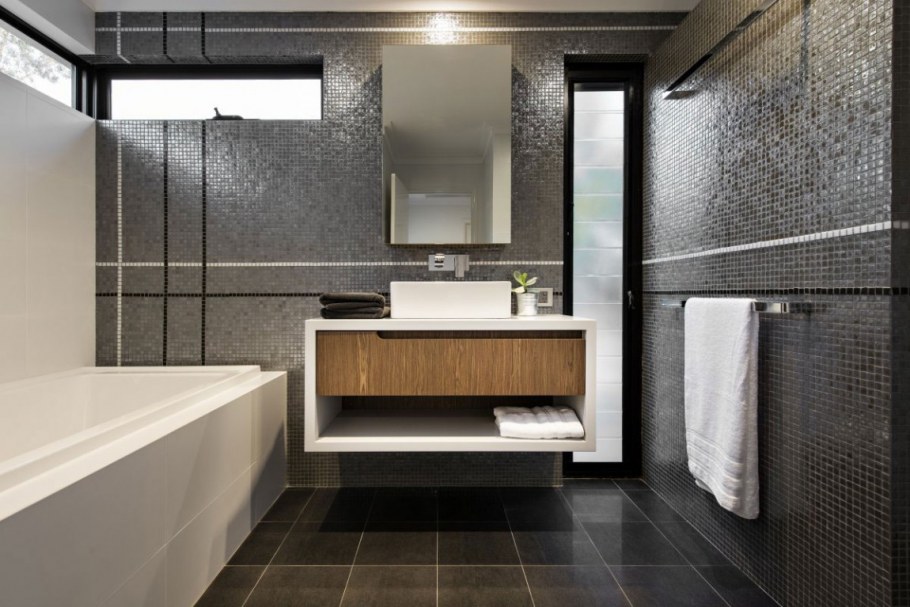 Серая плитка в ванной