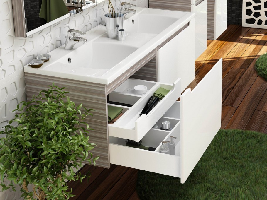 Тумба с двумя раковинами для ванной комнаты