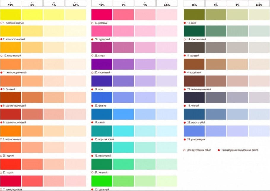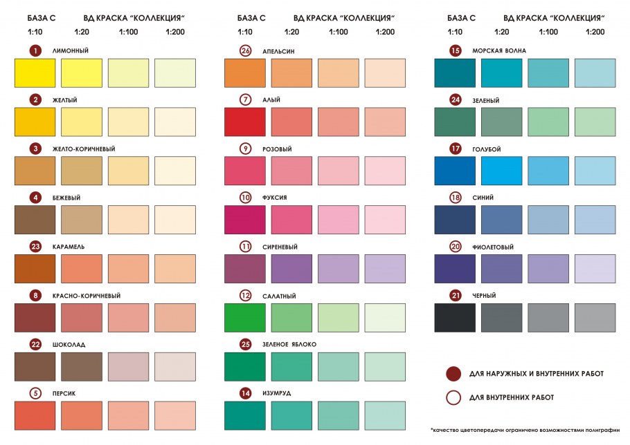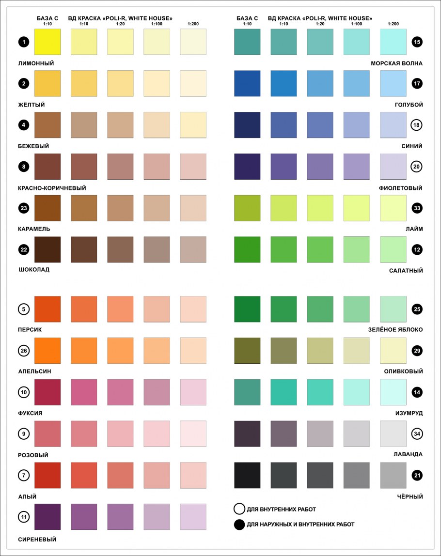 Палитра колеров для водоэмульсионной краски таблица цветов